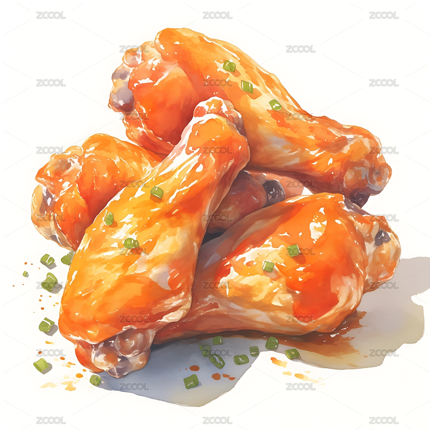 插画,食物,食品,白色背景,水彩,油画,美味,美食,炸鸡,炸鸡腿