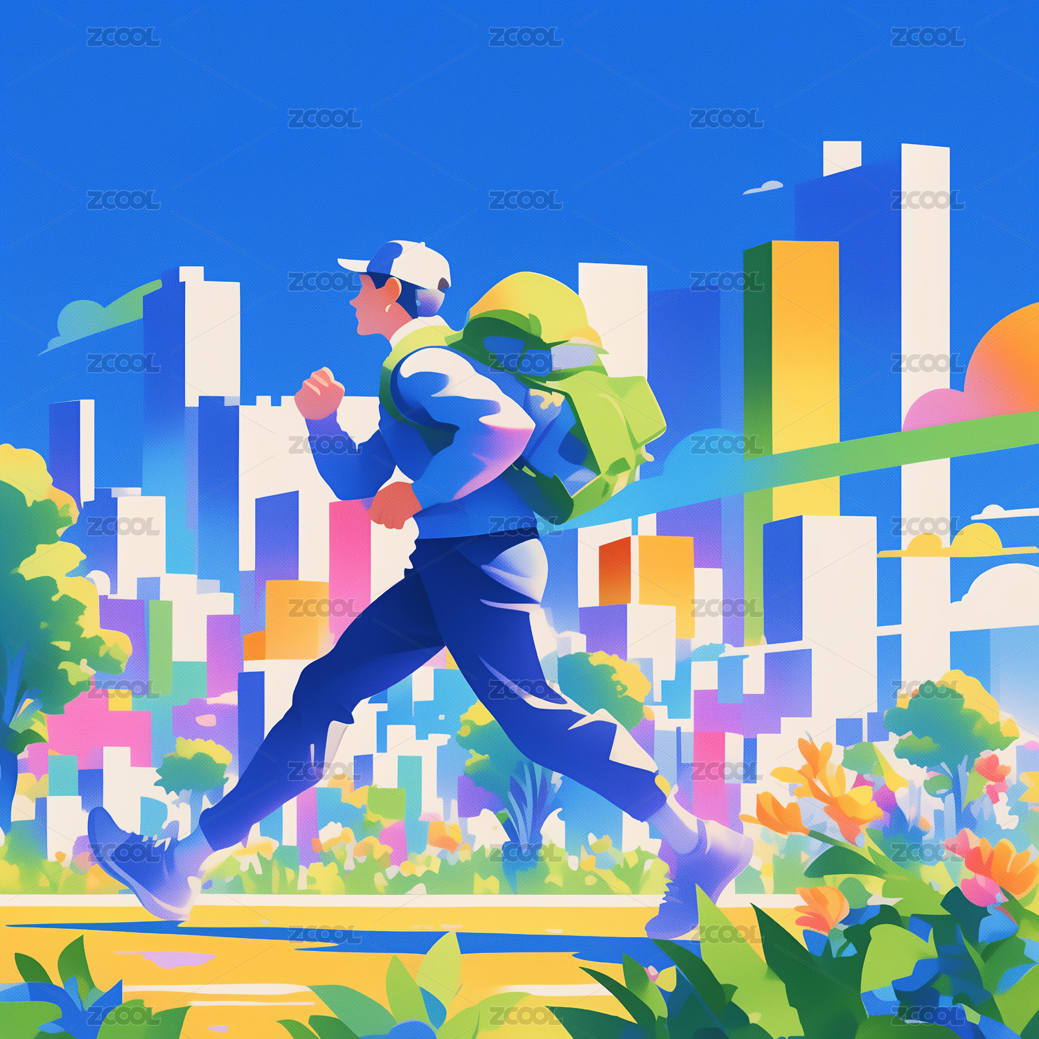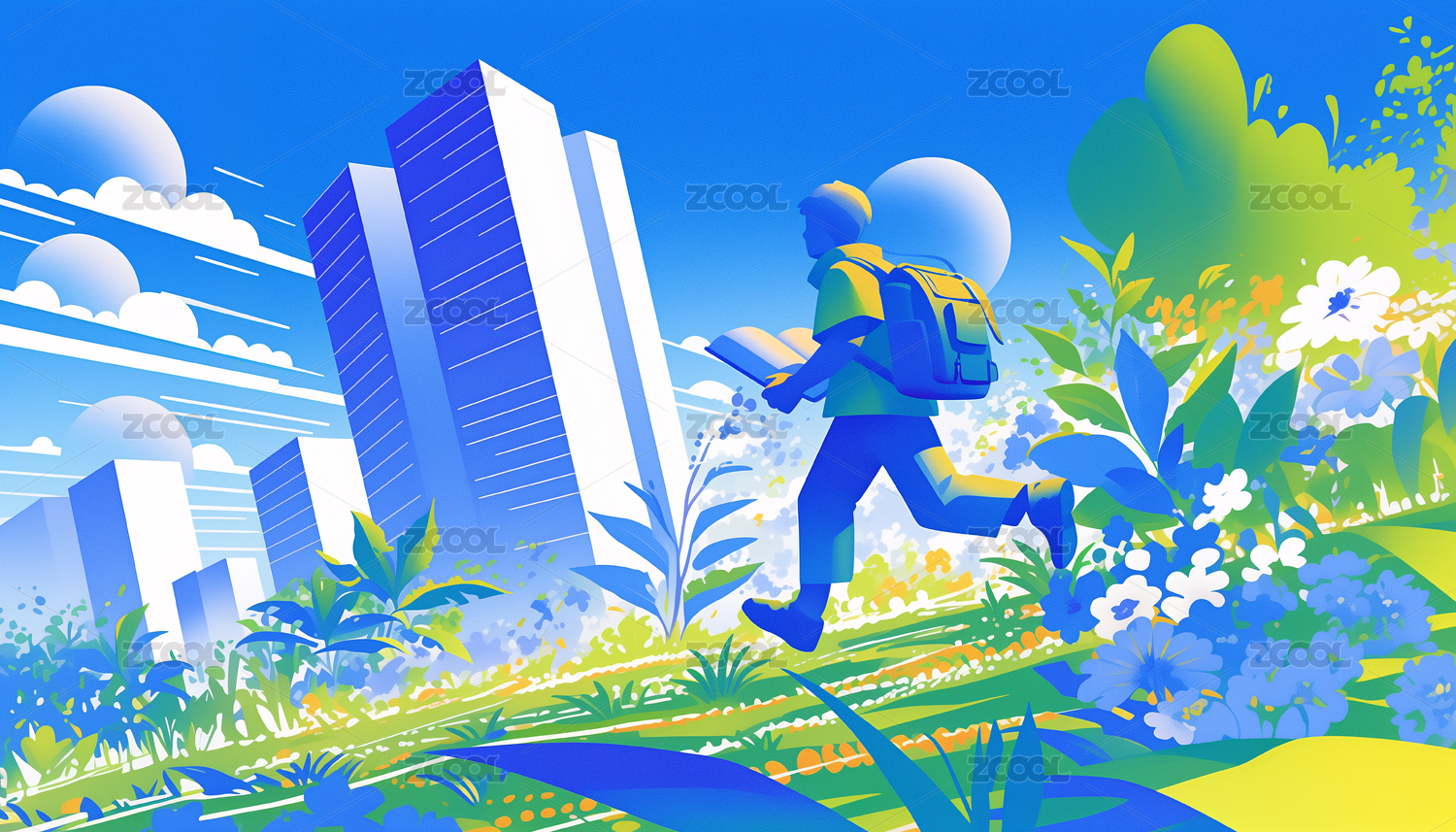 插画,潮流,渐变,男性,天空,书本,叶子,教育,教培,书包
