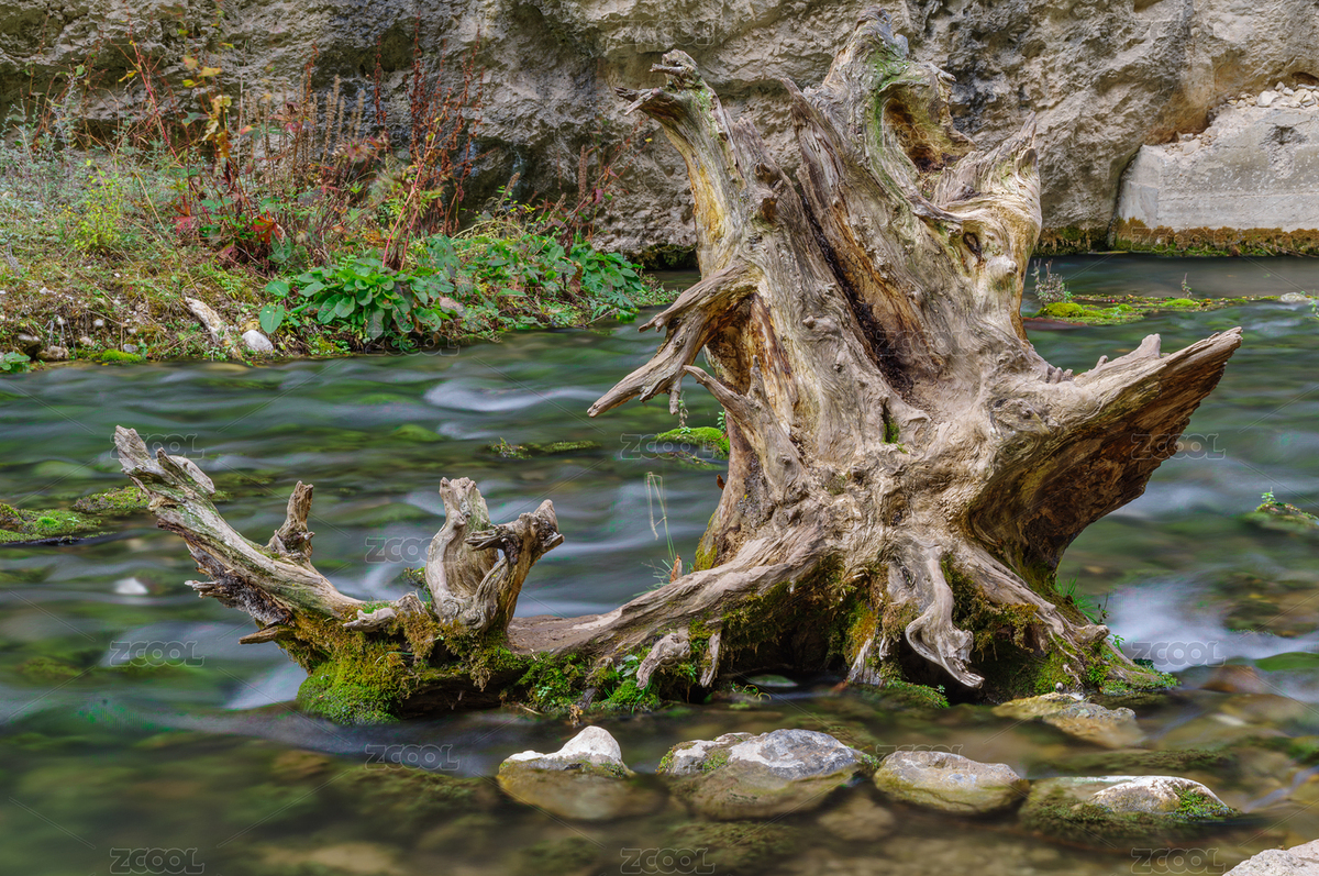 沈阳本溪老边沟,枯木苔藓岩石流水景观