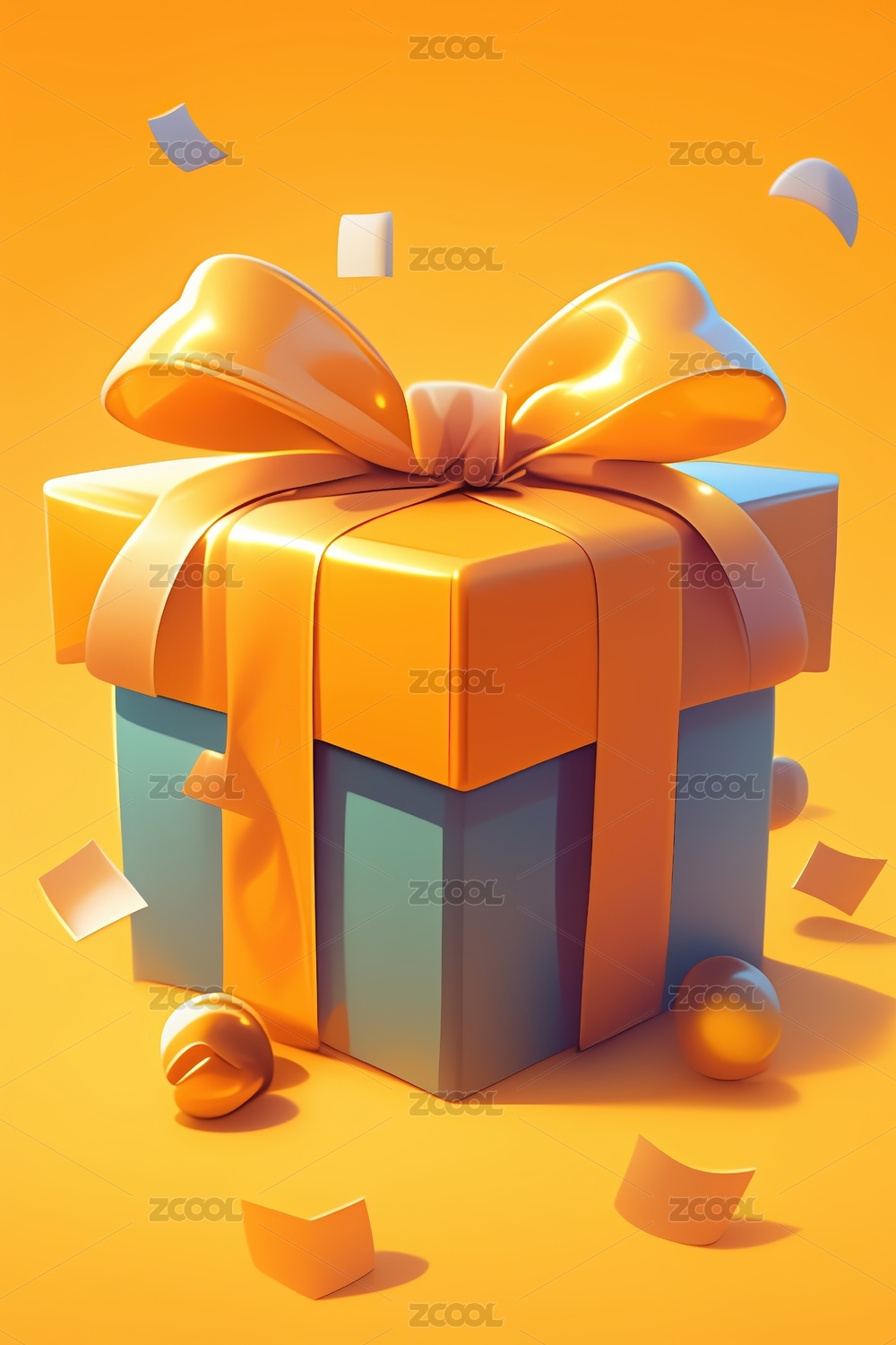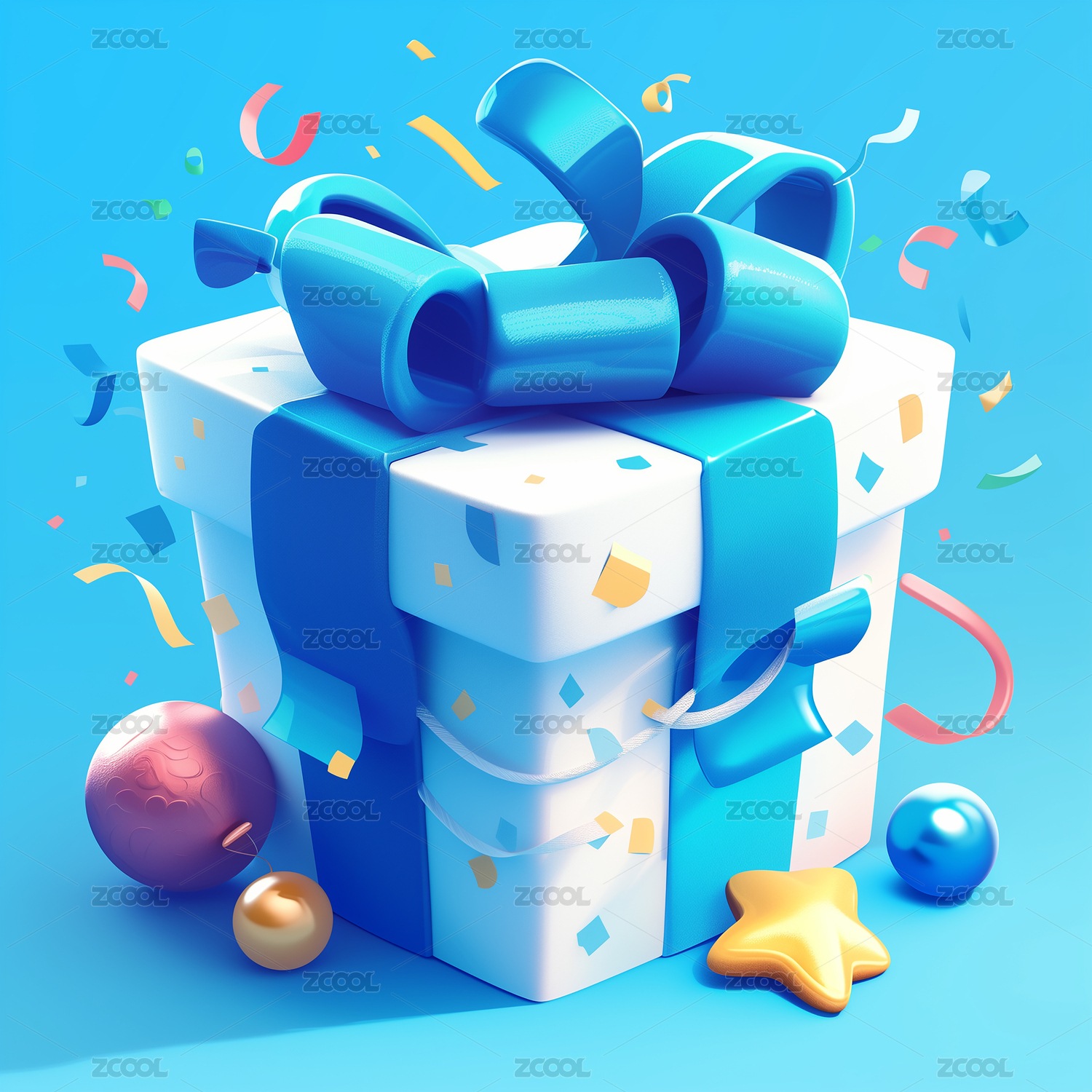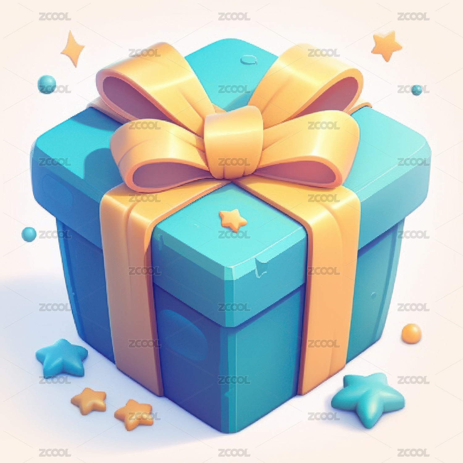 卡通立体3D戴蝴蝶结的礼物盒子