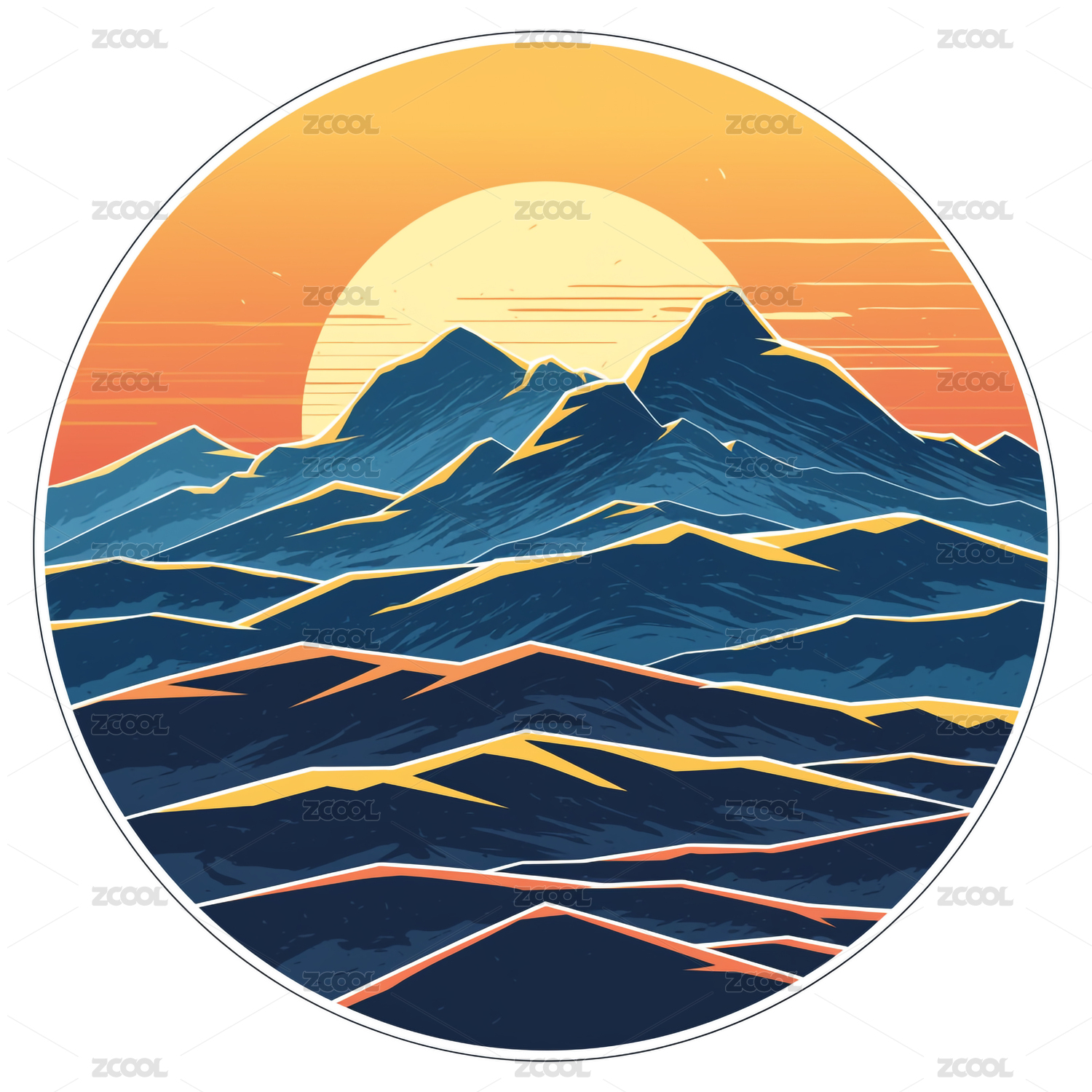 山脉落日插画