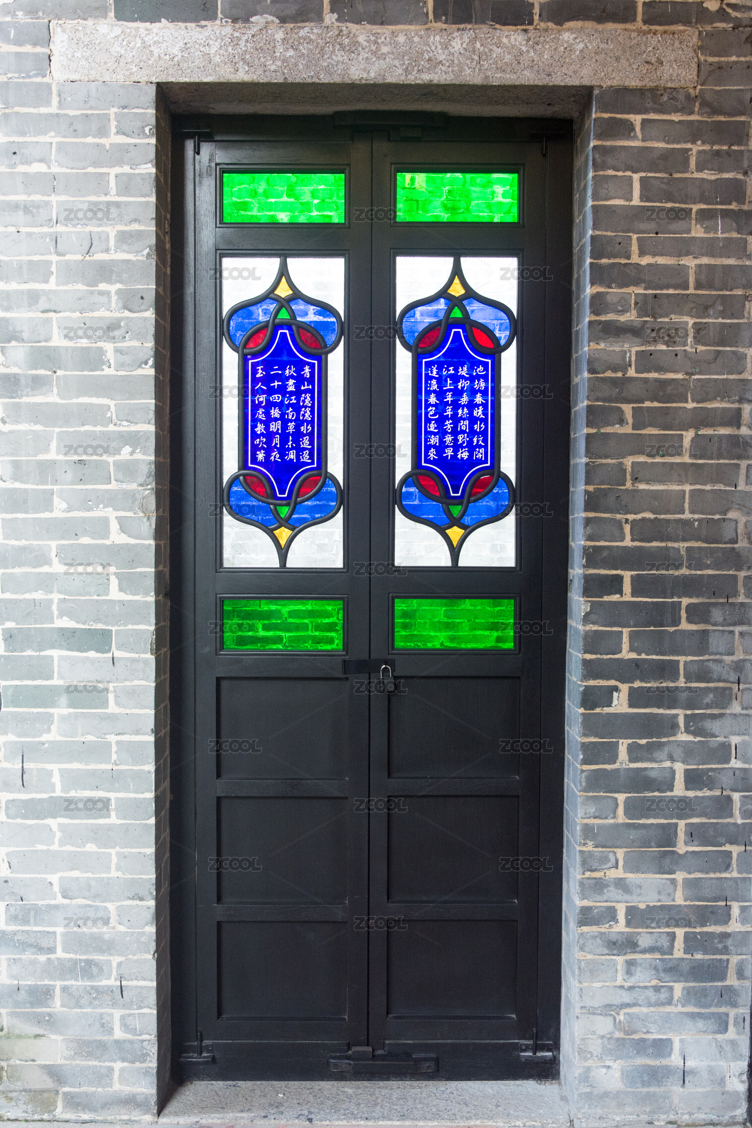 复古中式风格彩色玻璃门