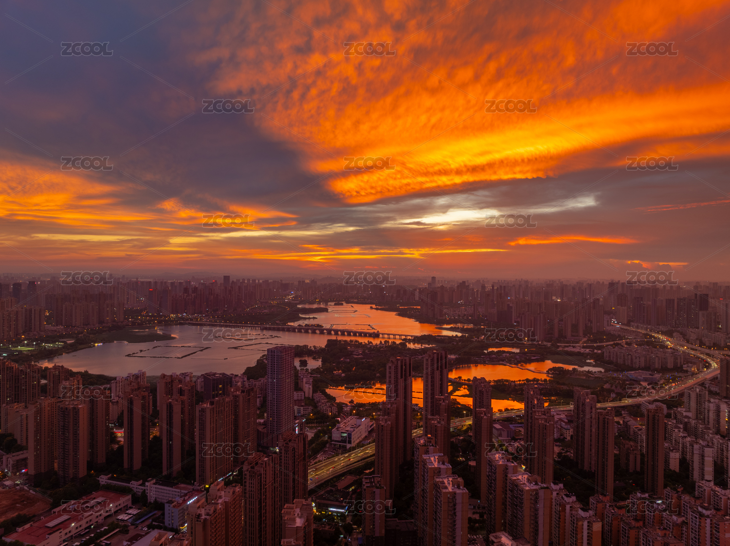 湖北武汉金银湖晚霞景色