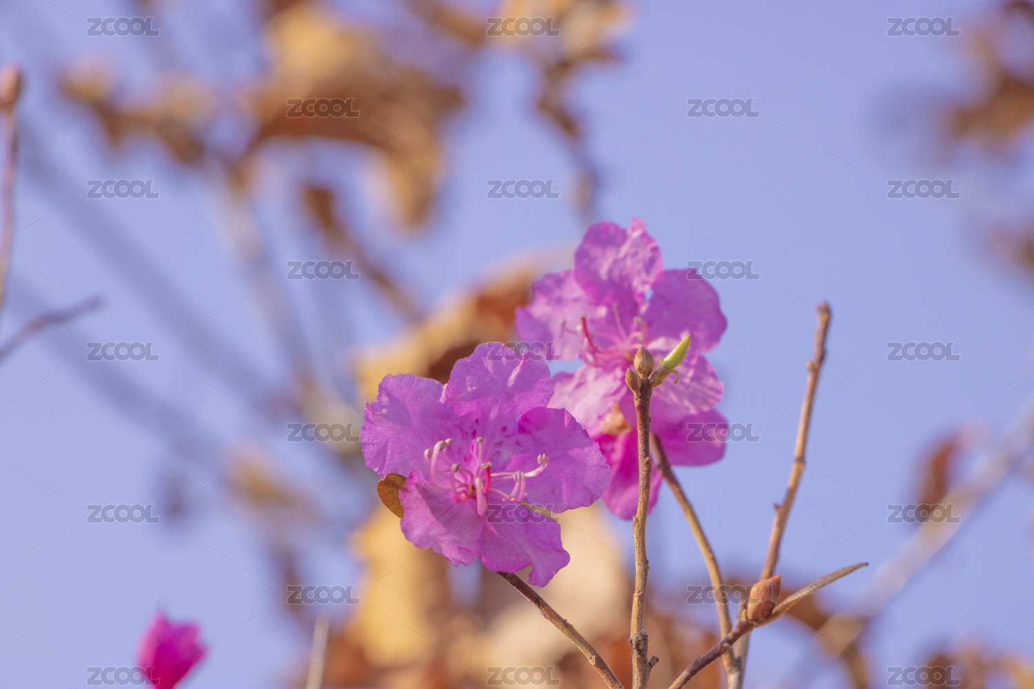 蓝天下一株粉色的杜鹃花