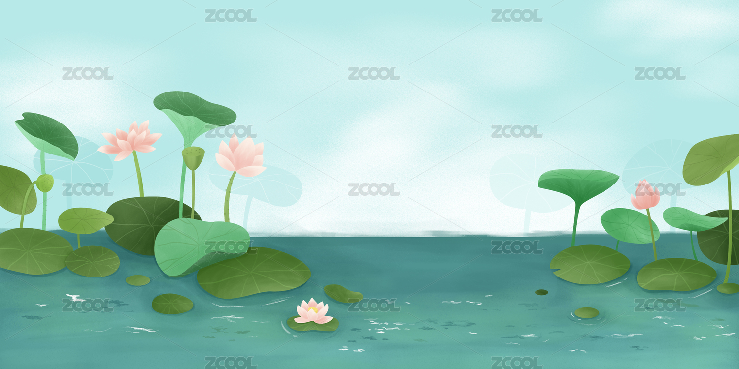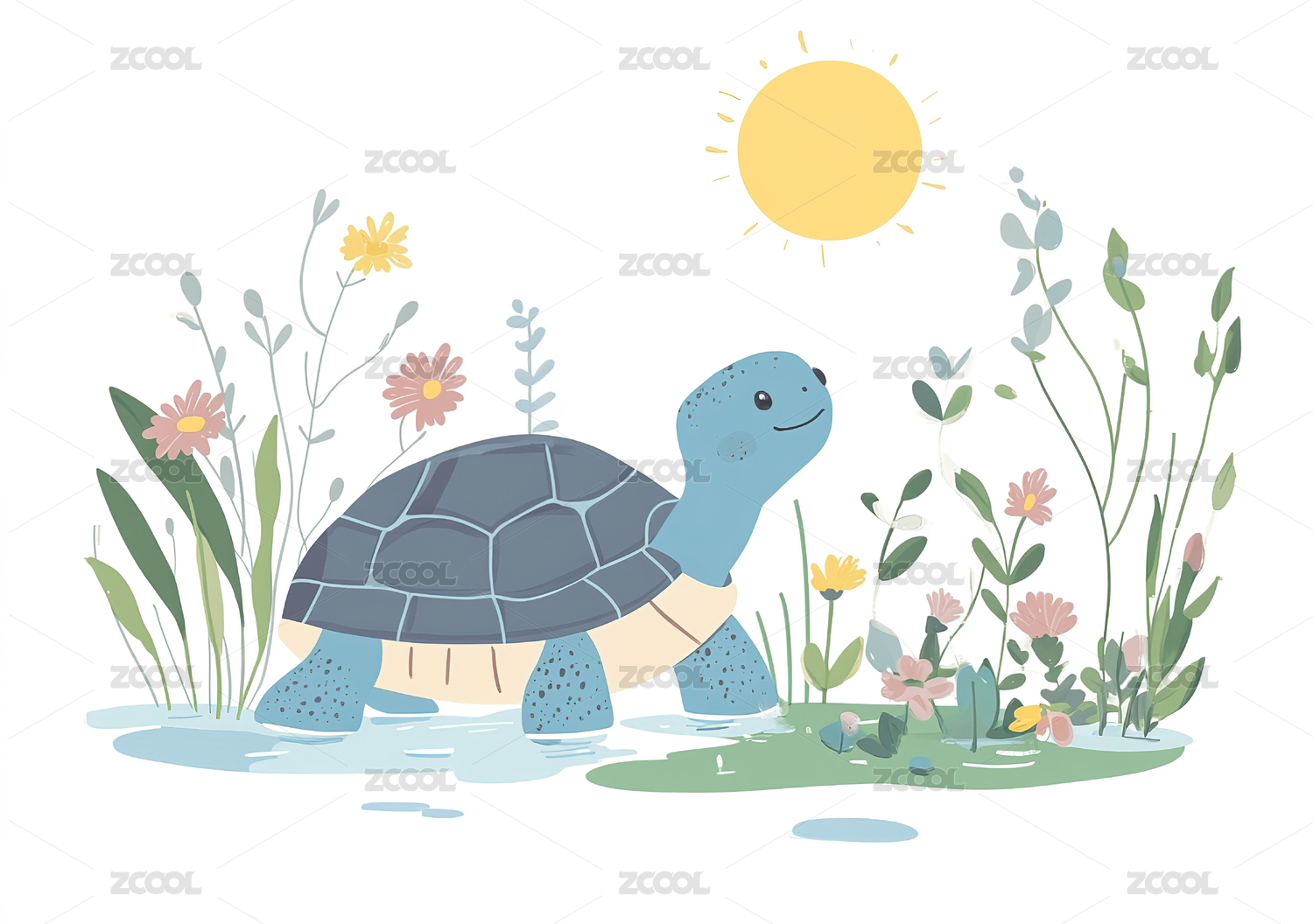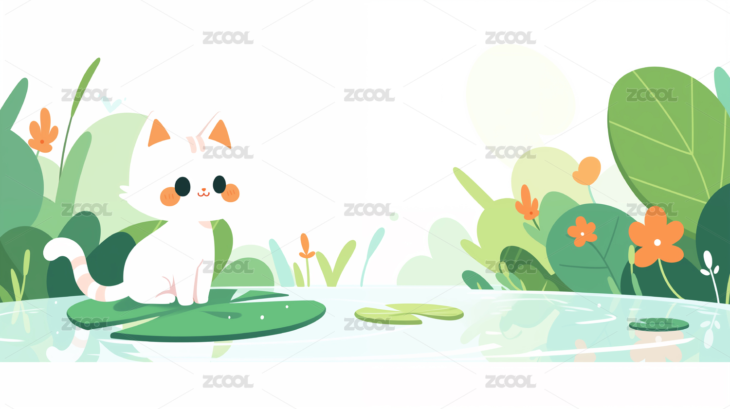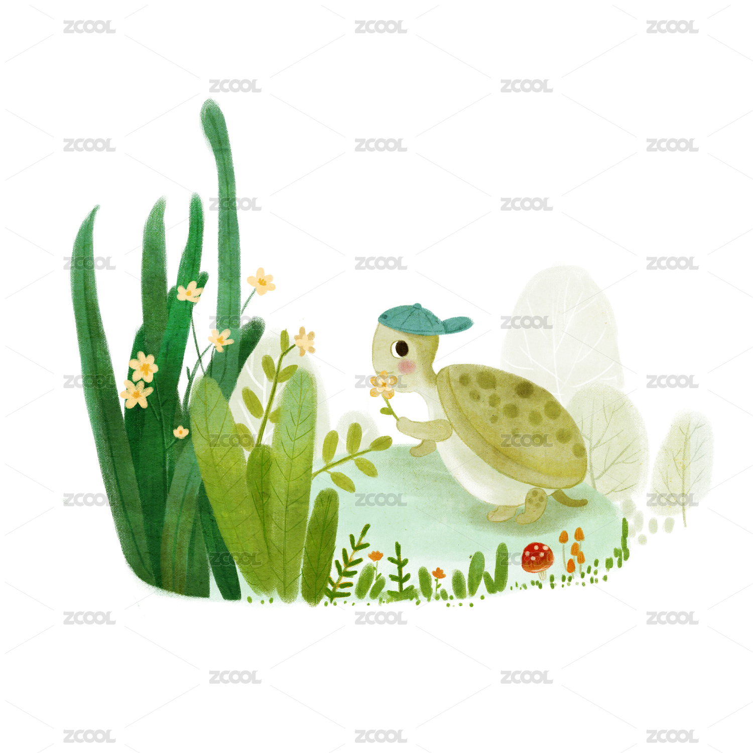卡通小兔子在雨中用荷叶打伞儿童绘本插画植