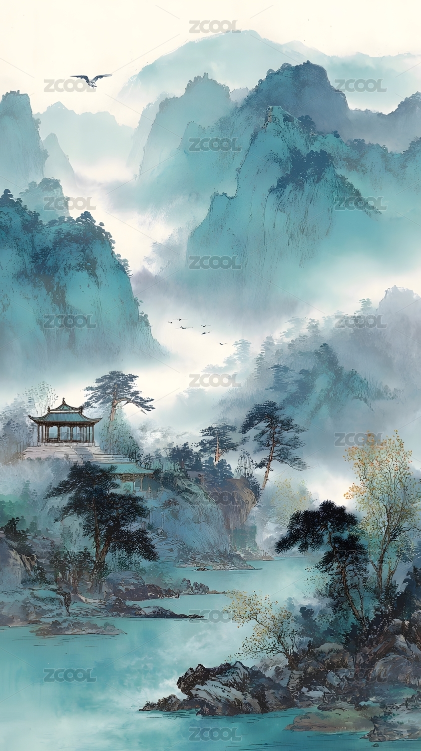 背景,艺术,插画,中国风,古风,AIGCFG,写意,山水画,插图,山水