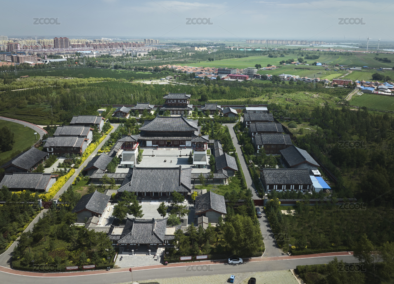 中国山东省德州市庆云县海岛金山寺景区俯瞰景色