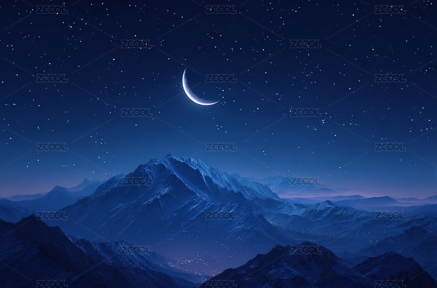 蓝色,夜空,星空,夜晚,月亮,山脉,星光,星星,安静,宁静