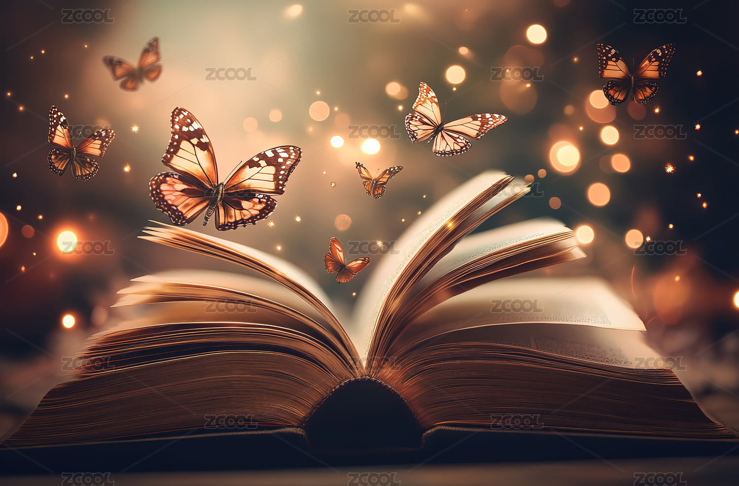 蓝色,蝴蝶,知识,学习,书本,展开,书籍,翅膀,飞舞,彩色