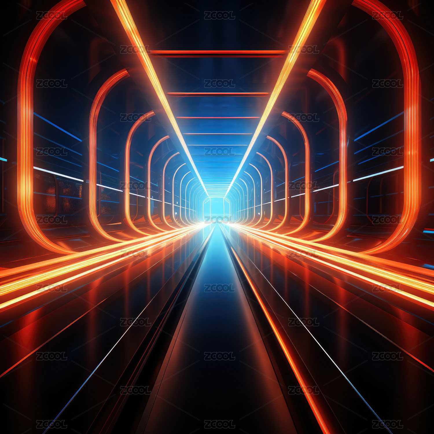 科幻隧道光影交错未来感