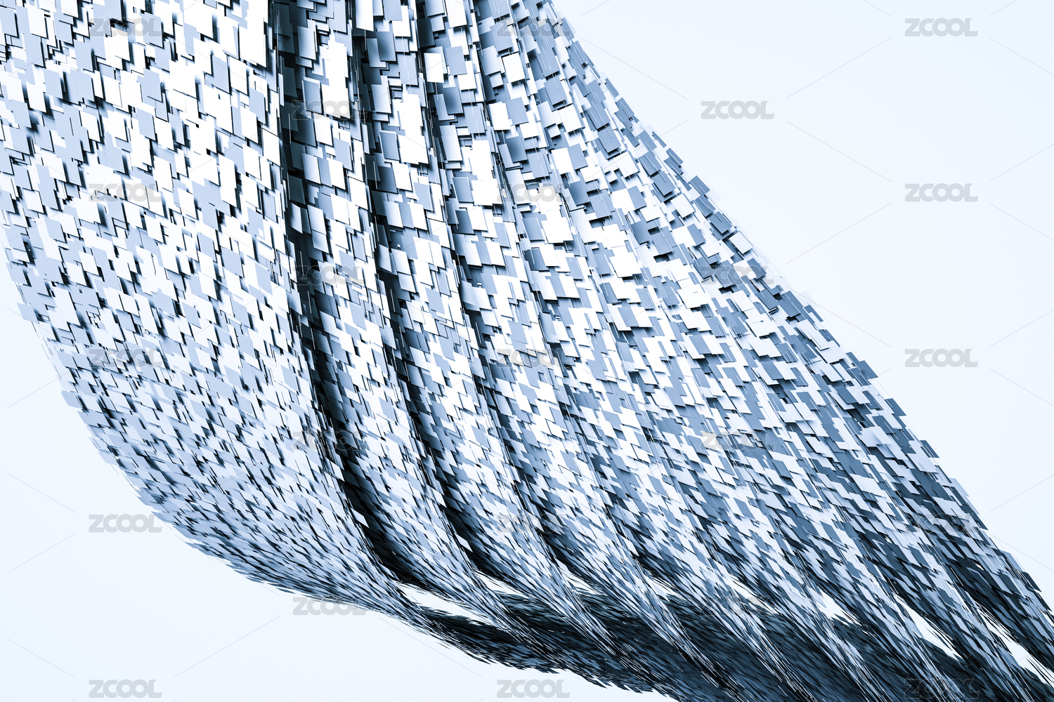 旋涡状旋转的蓝白相间粒子 三维渲染