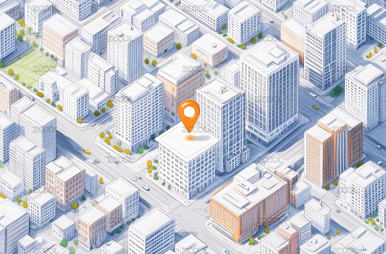 迷你都市里的定位标记 3D渲染