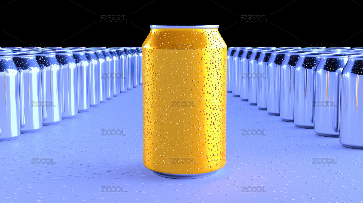蓝色灯光下的铝罐