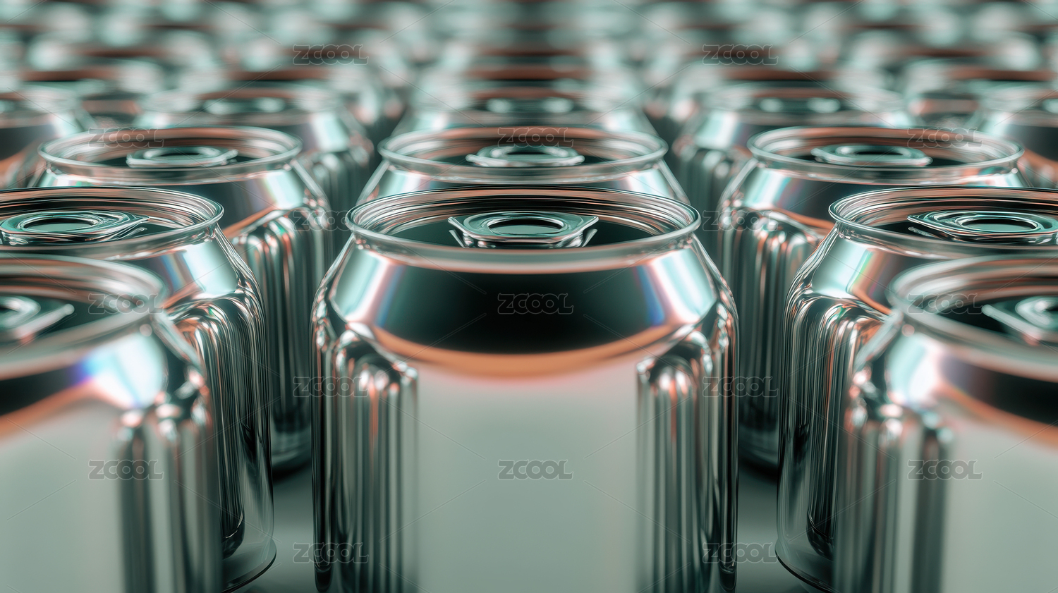 排列整齐的崭新的金属易拉罐 三维渲染