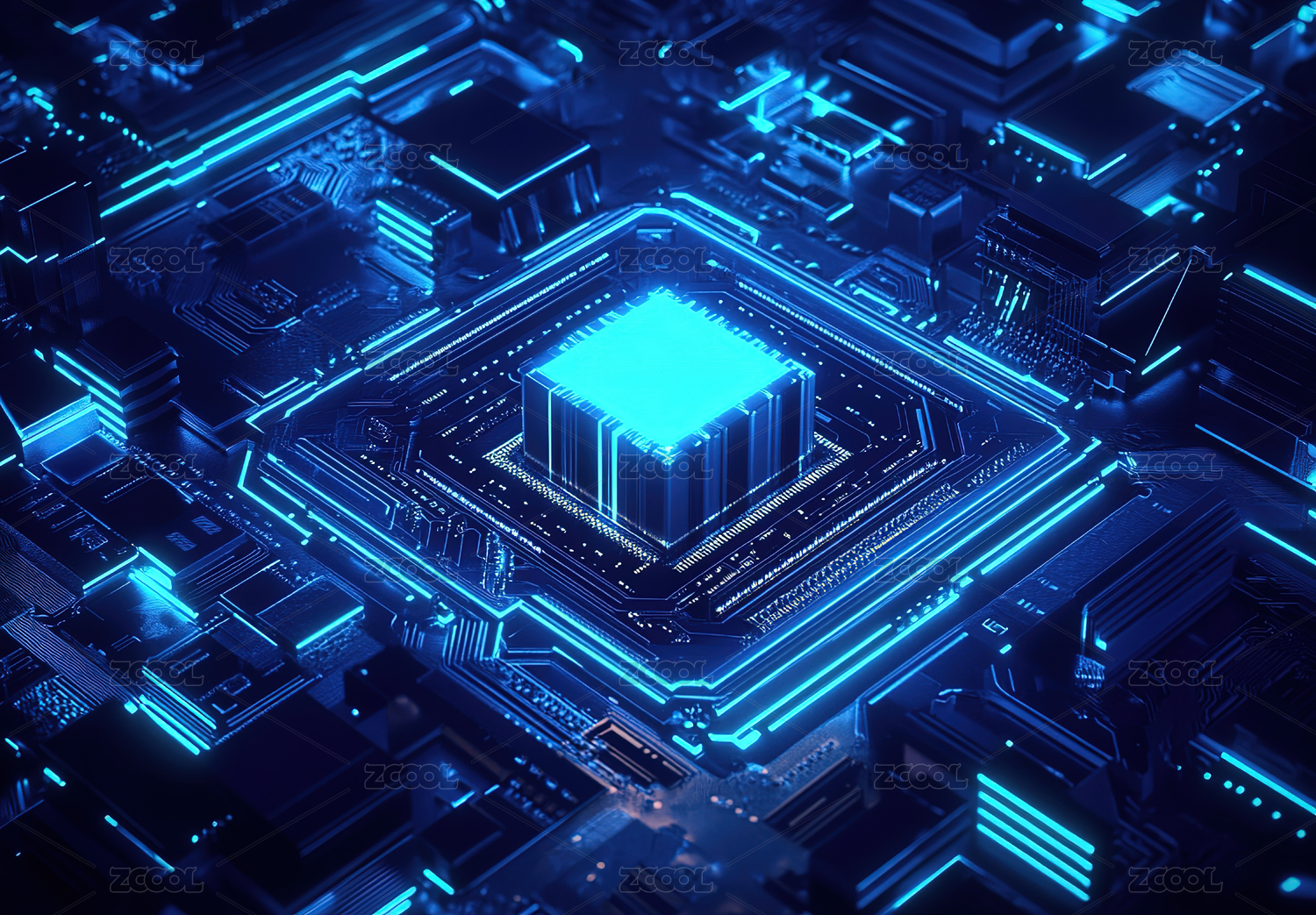 数码科技蓝色未来微芯片处理器抽象海报背景