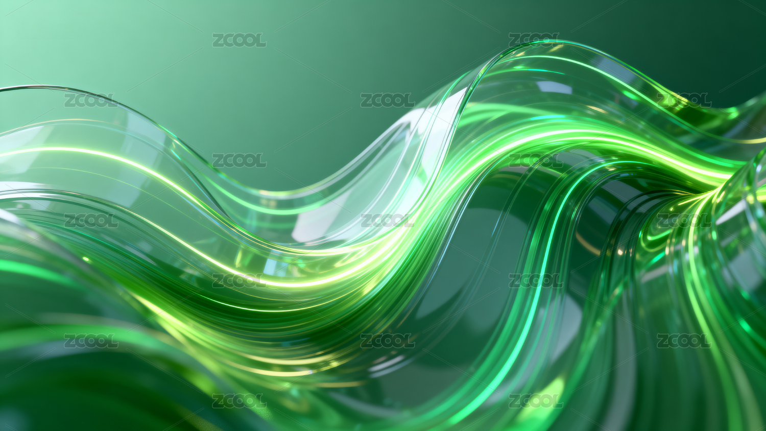 3D,插画,流动,透明,背景,曲线,绿色,抽象,创意,渐变