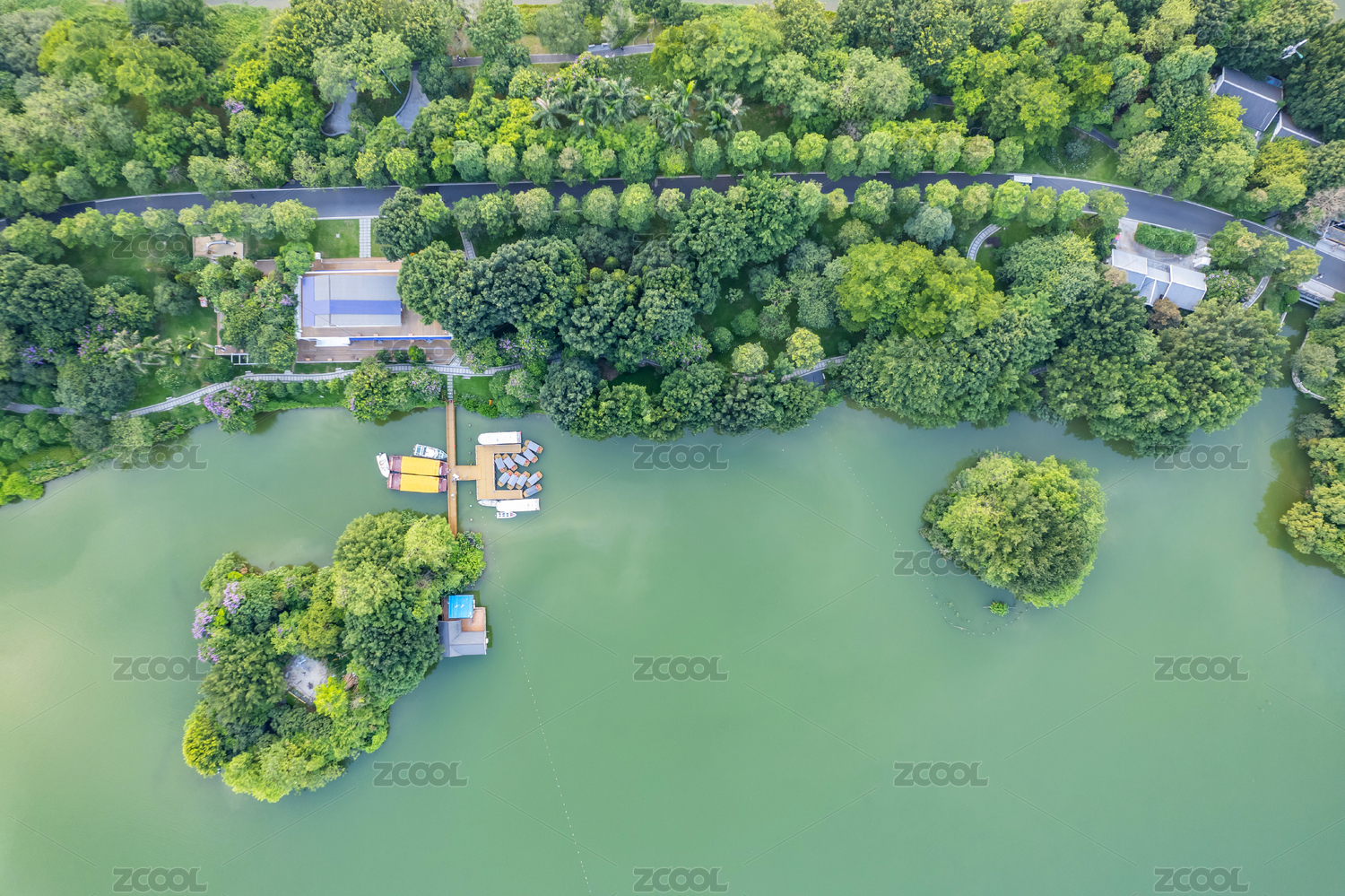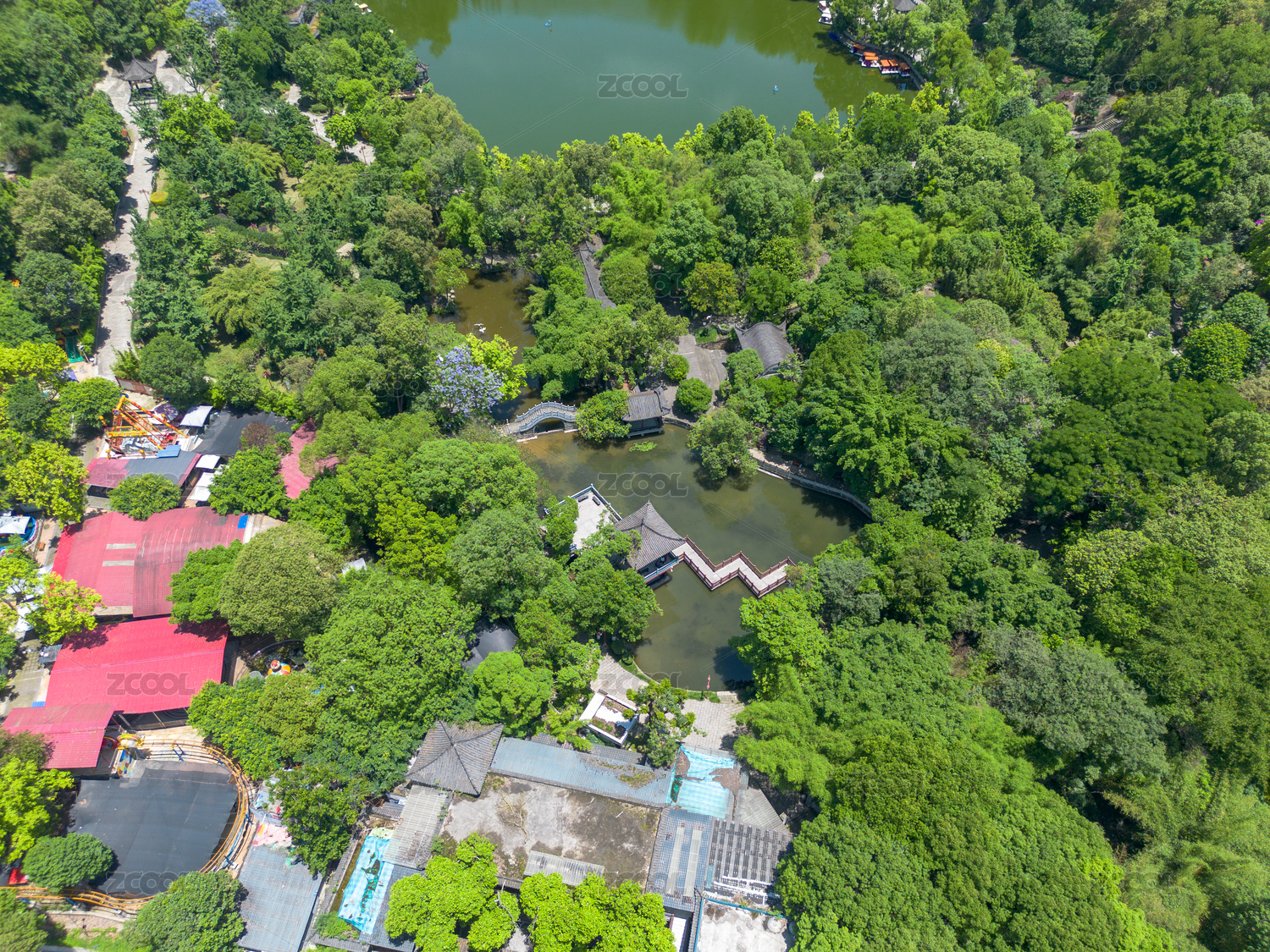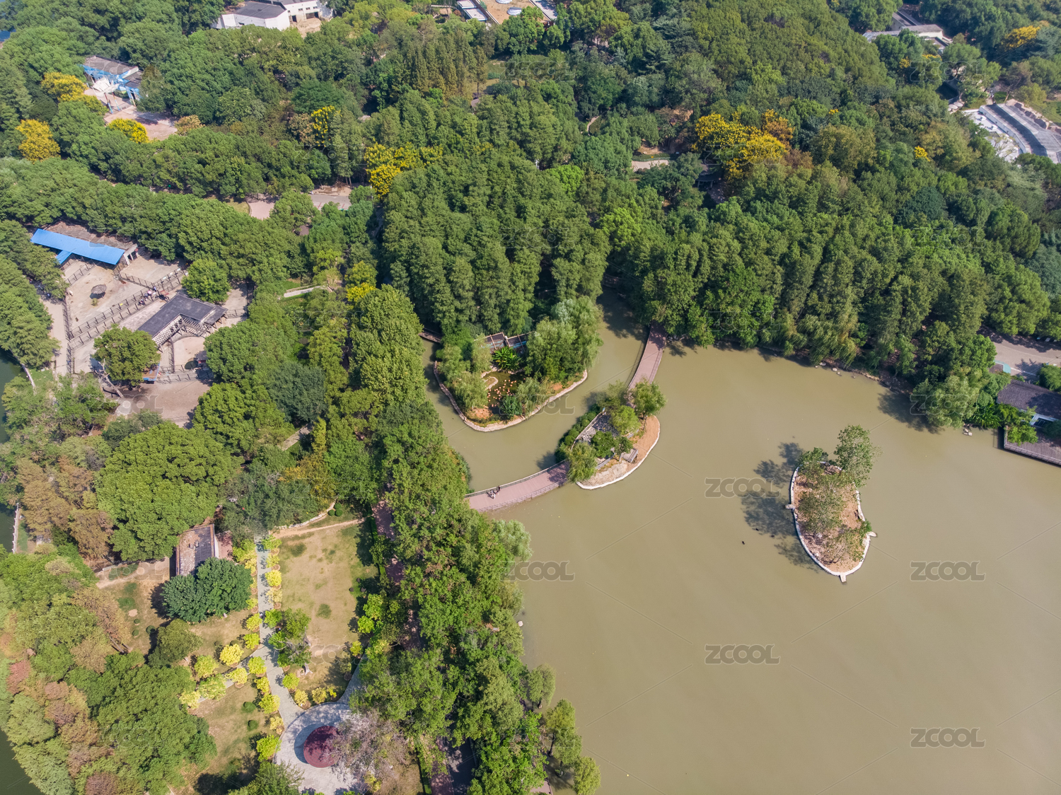 武汉动物园公园夏季航拍风光