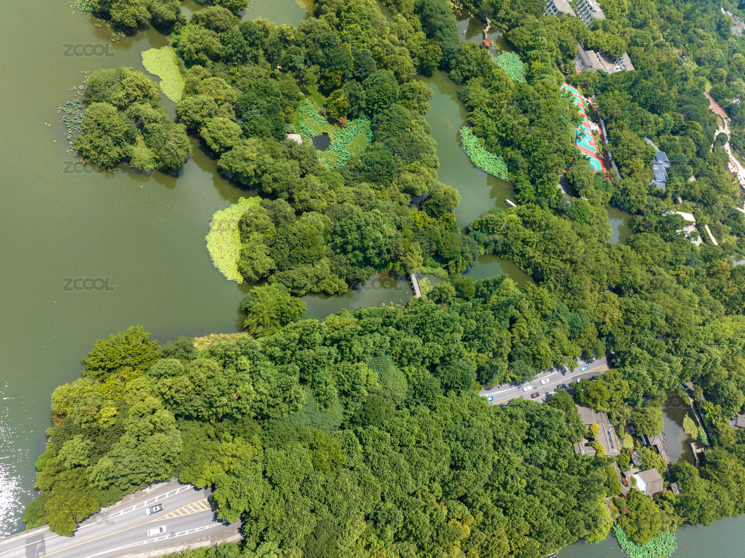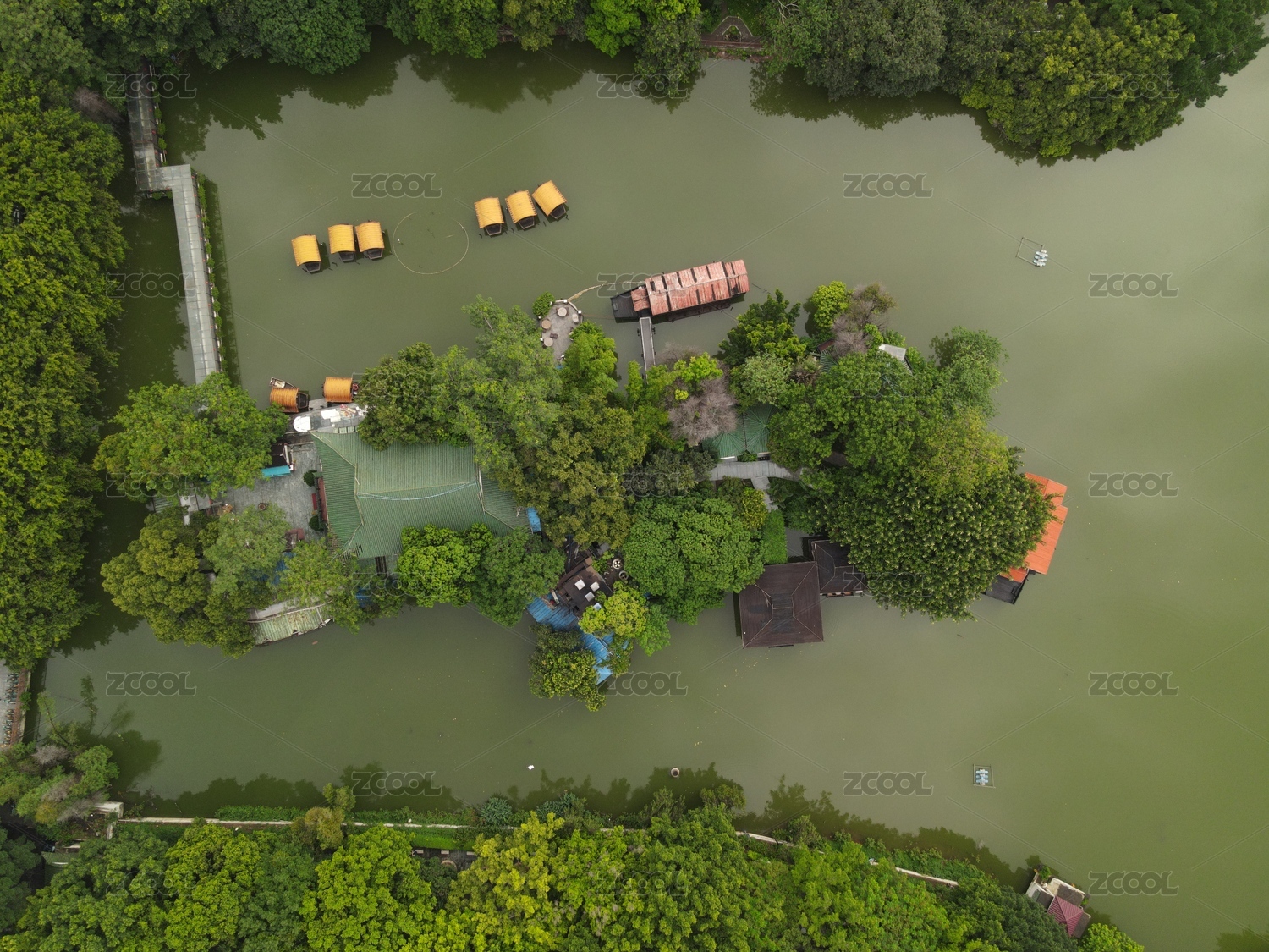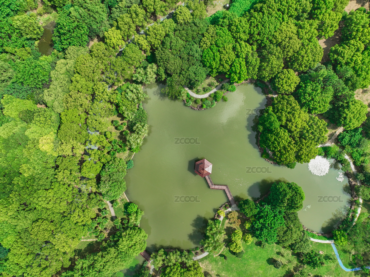 武汉动物园公园夏季航拍风光