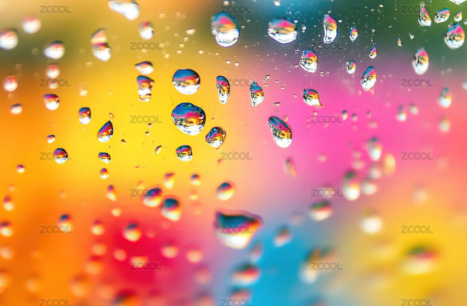 背景是城市灯光窗玻璃上雨滴的散景照片