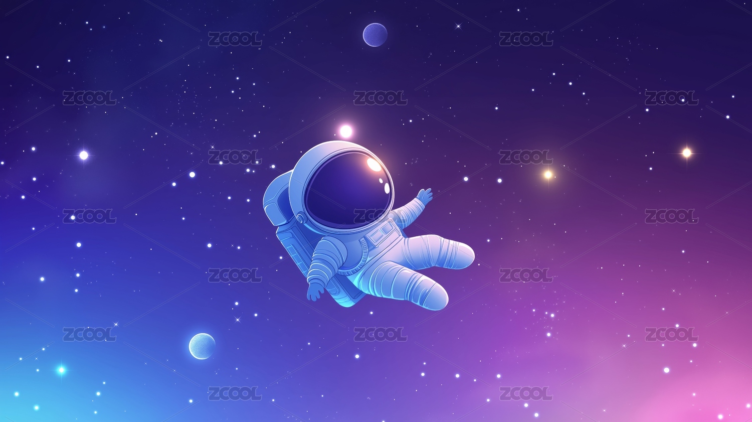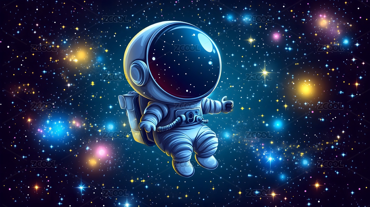 星空下宇航员漂浮,卡通风格太空探索之旅
