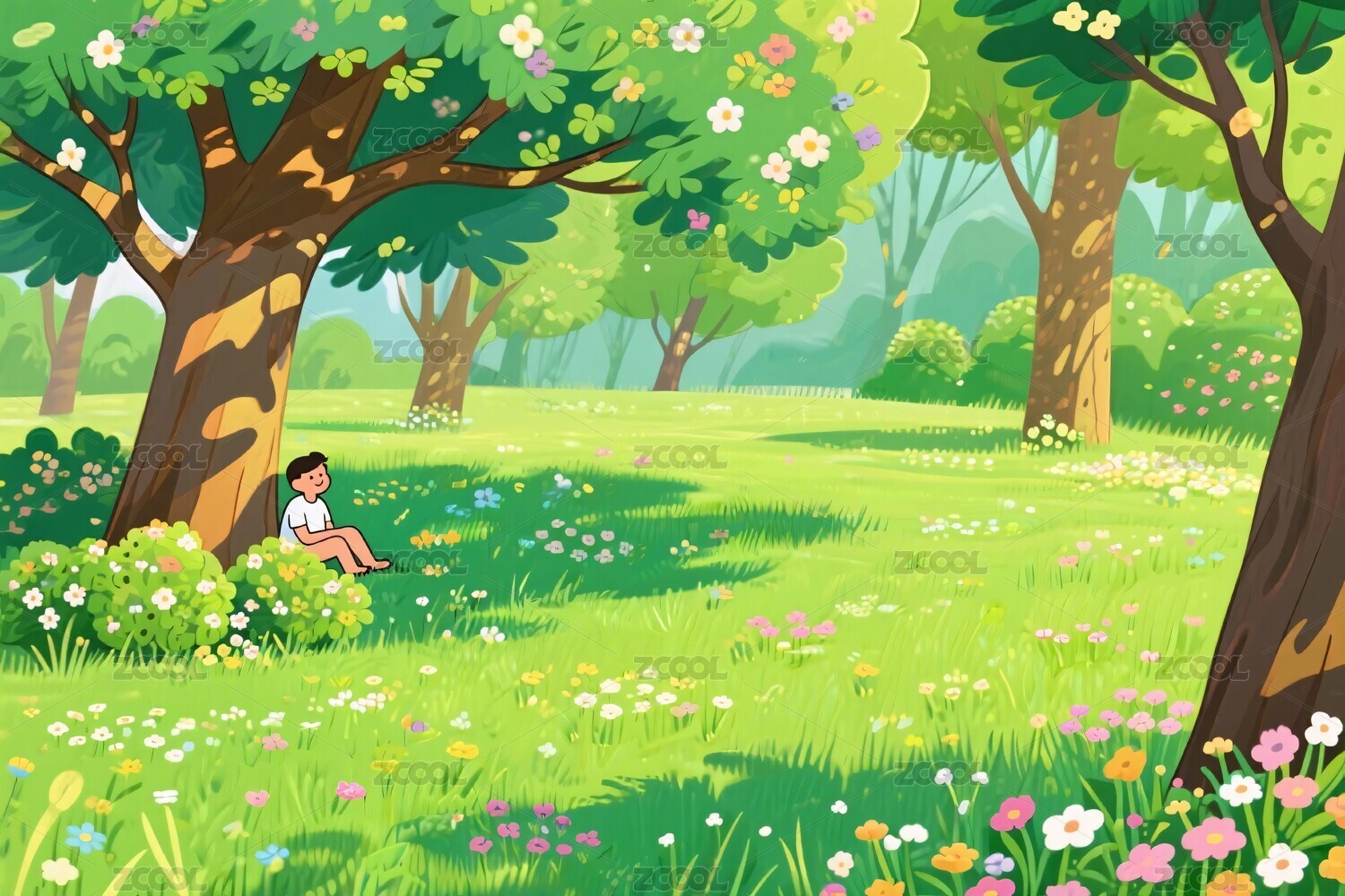 森林卡通休憩场景