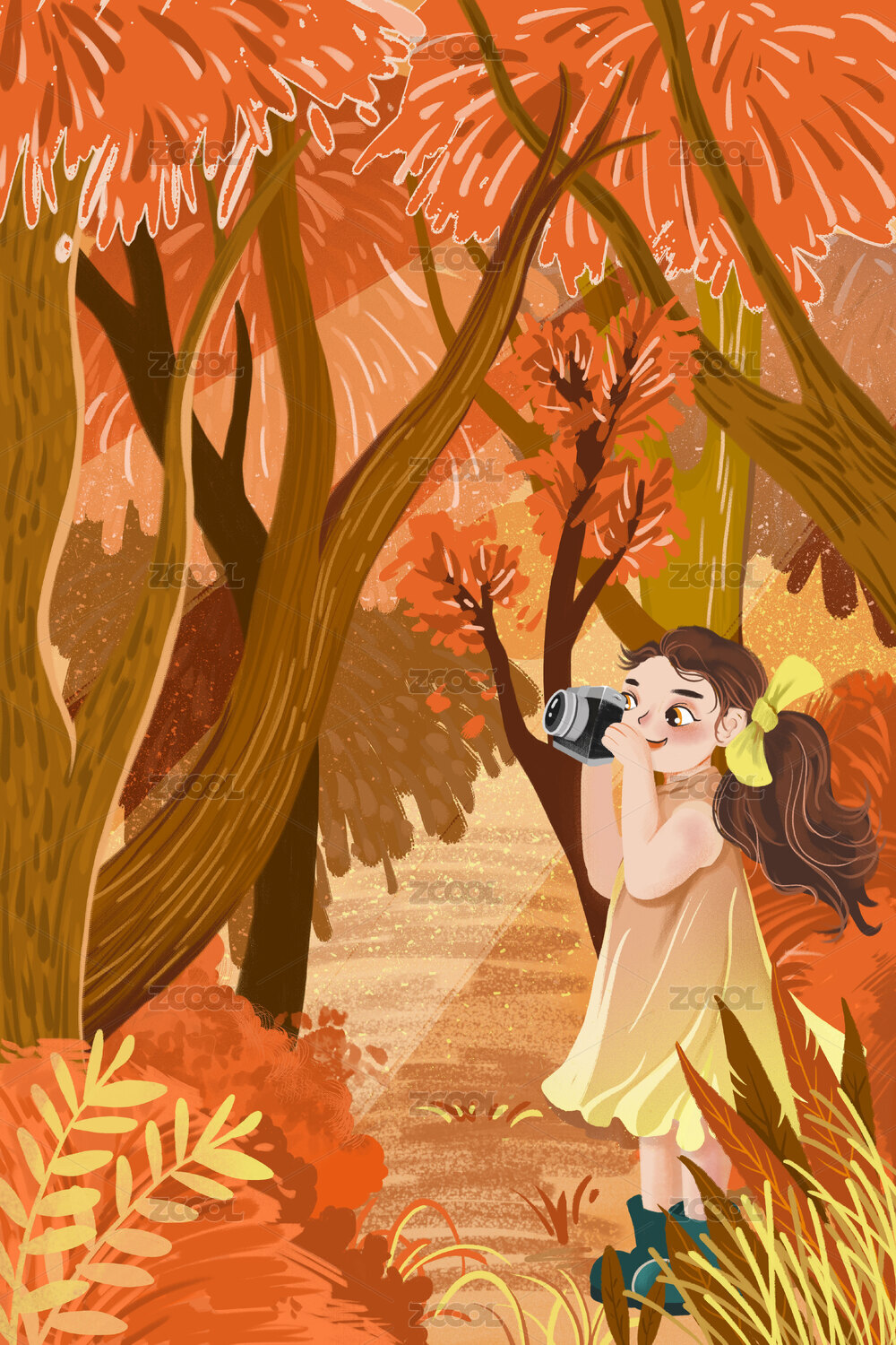 儿童插画,卡通人物,秋天,秋季,可爱,秋姑娘
