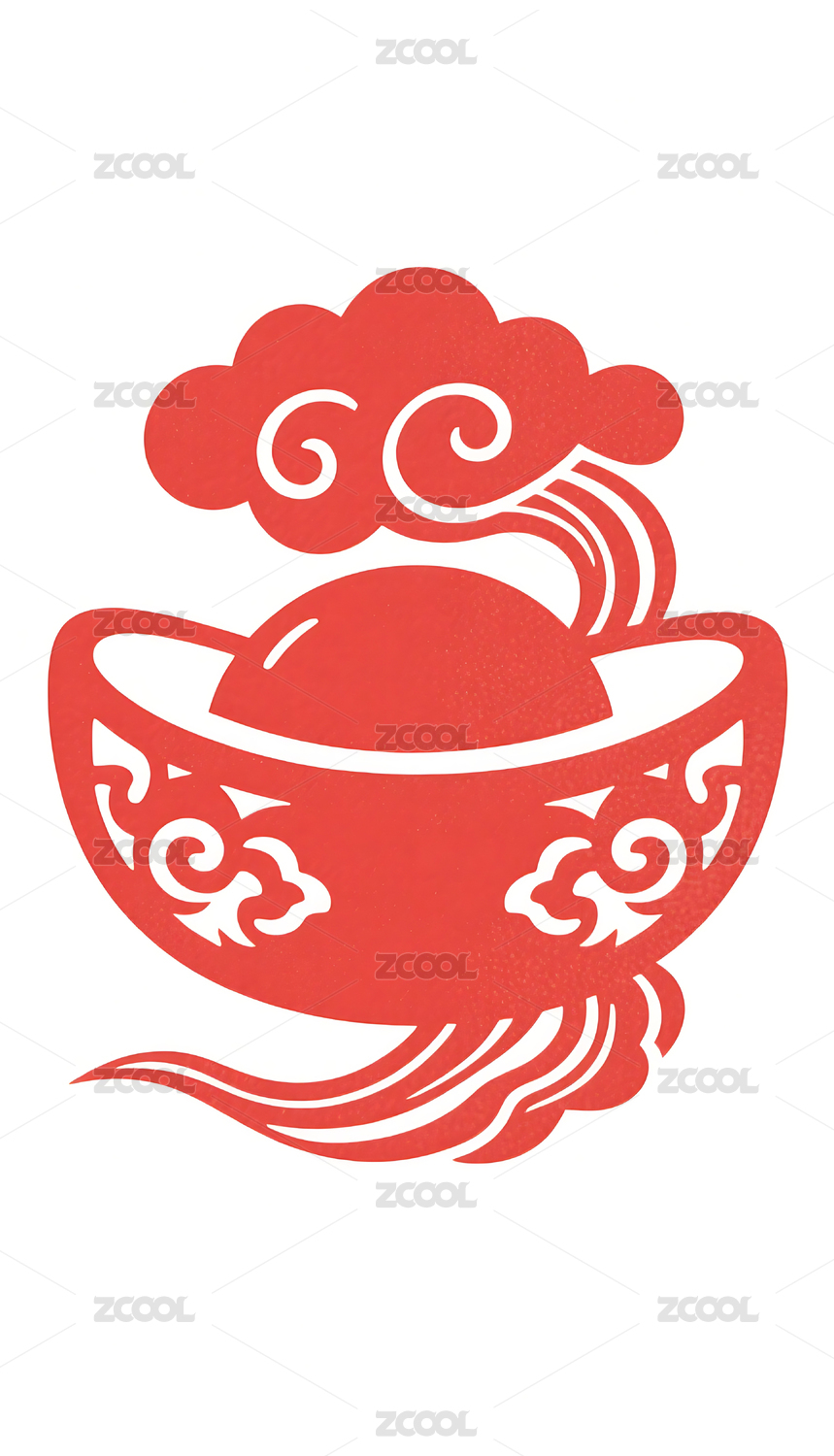 瓷器杯子盆景山水风景闲云中国风矢量插画