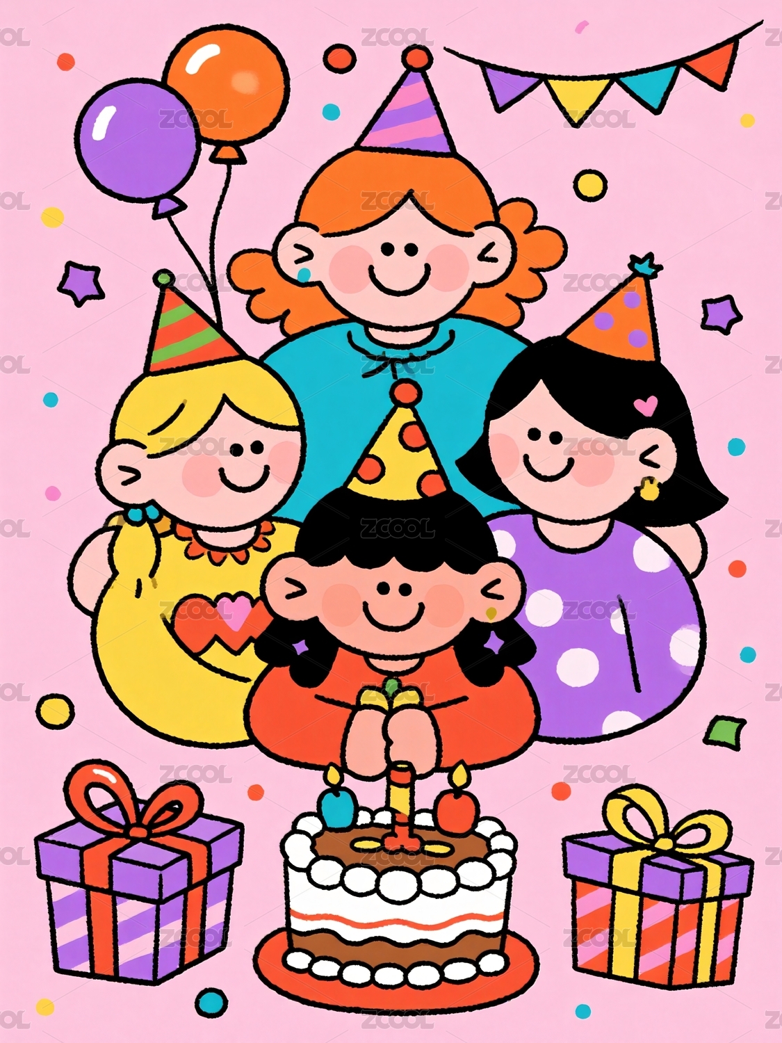 小女孩庆生插画