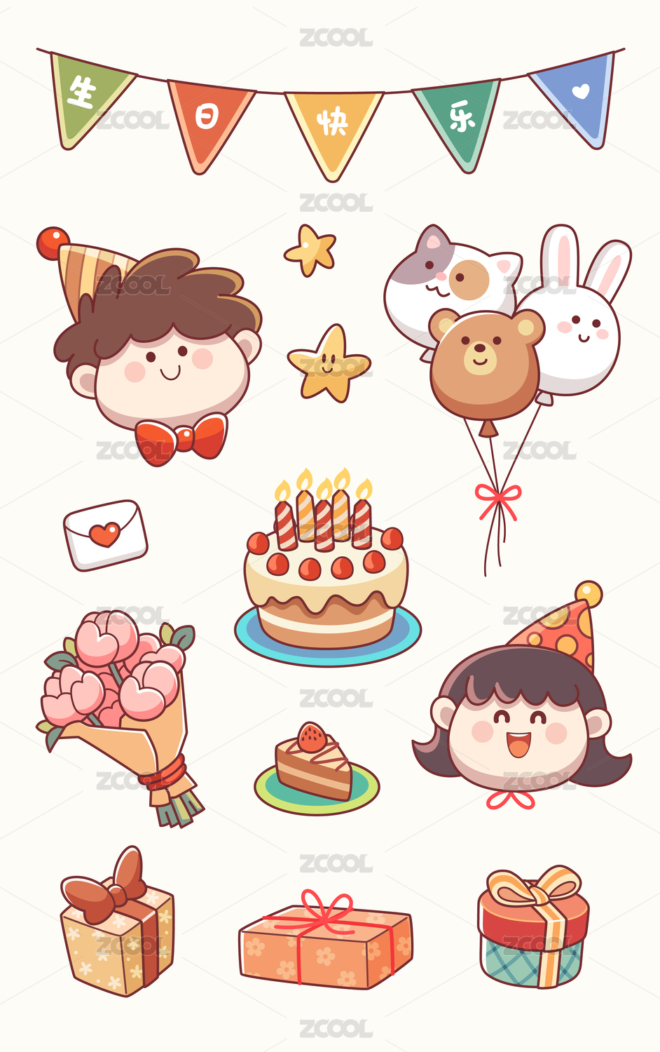 卡通可爱生日派对元素插画