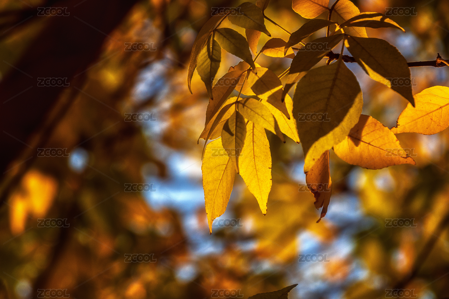 秋叶,落叶,树枝,金色,黄色,背景虚化,光影,自然,温暖,诗意