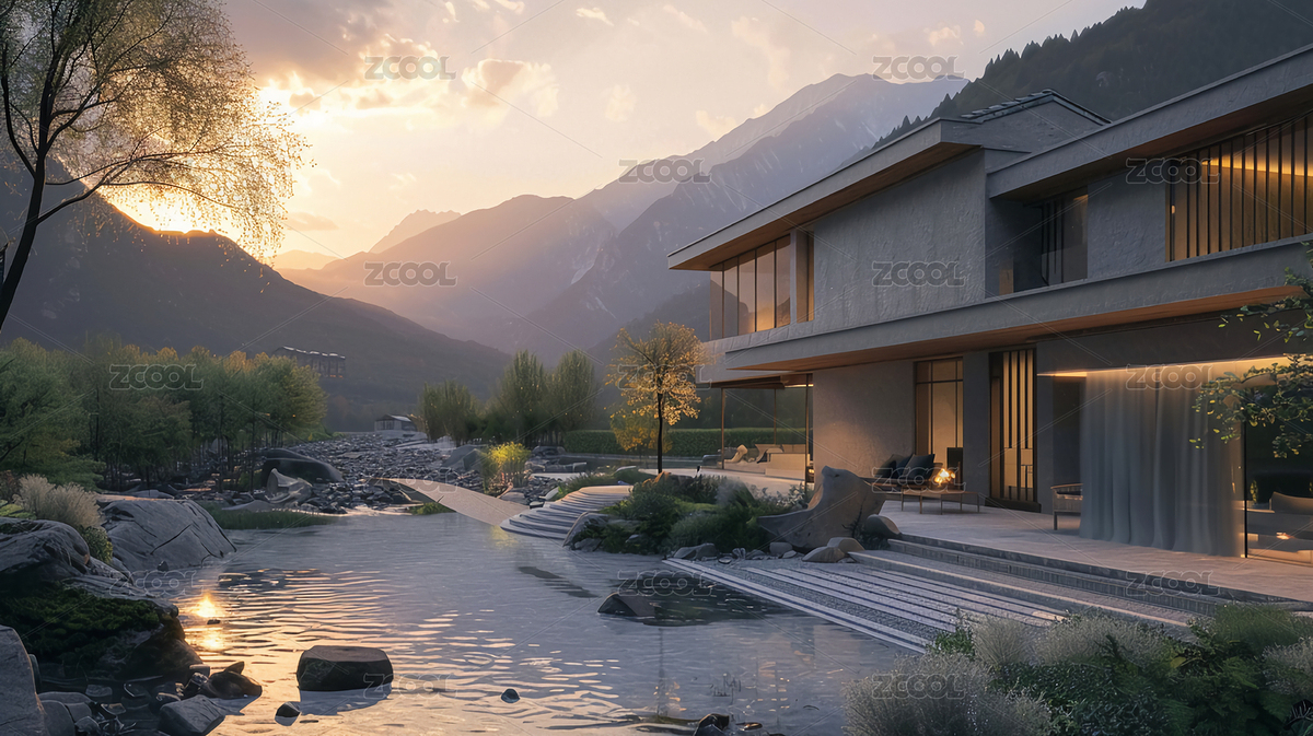 酒店,民宿,山居,水系,无边,游泳池,树木,天花板,设计,宝地