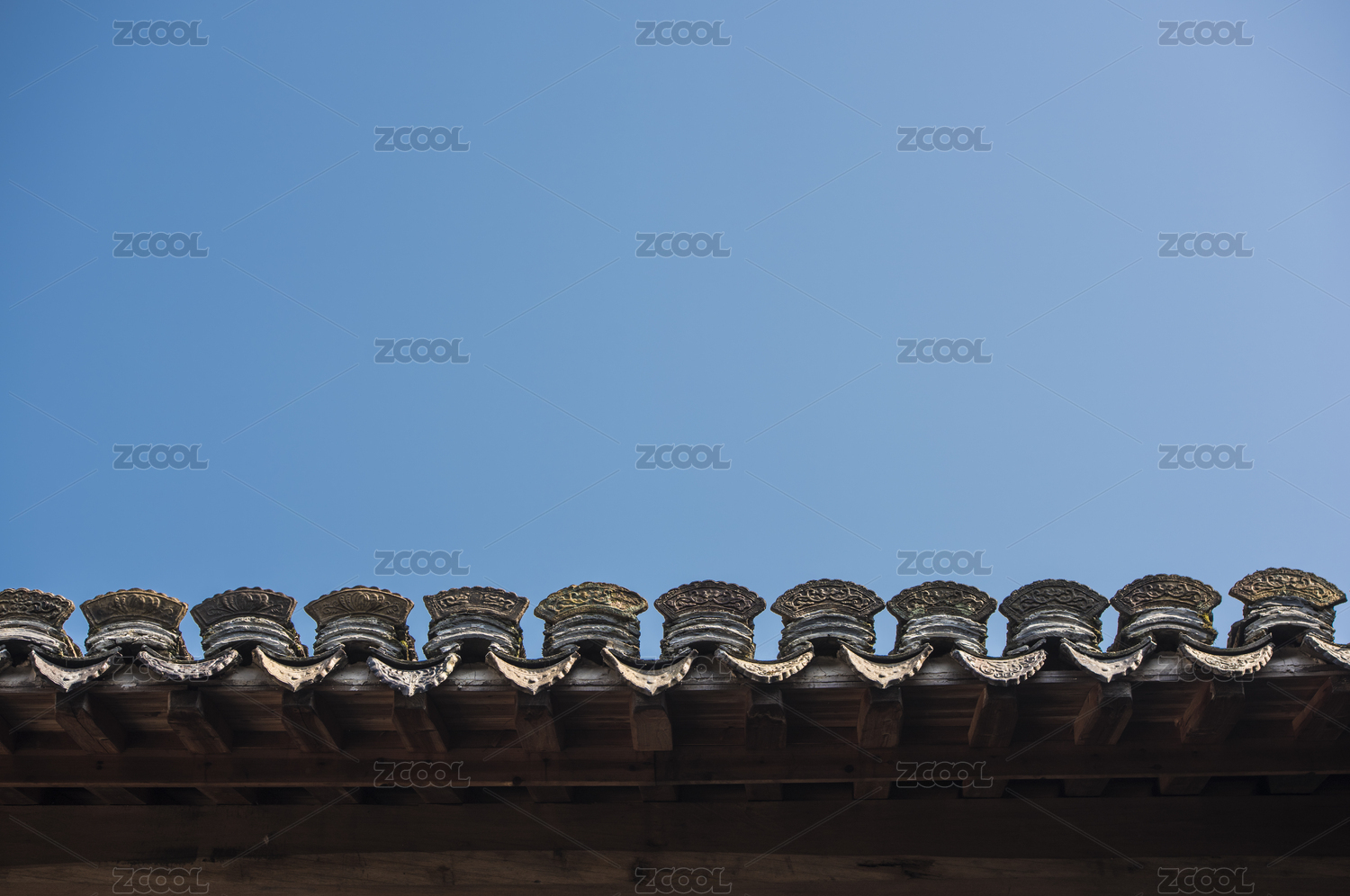 吉林市炮台山上古建筑庙宇青砖墙及屋檐瓦当