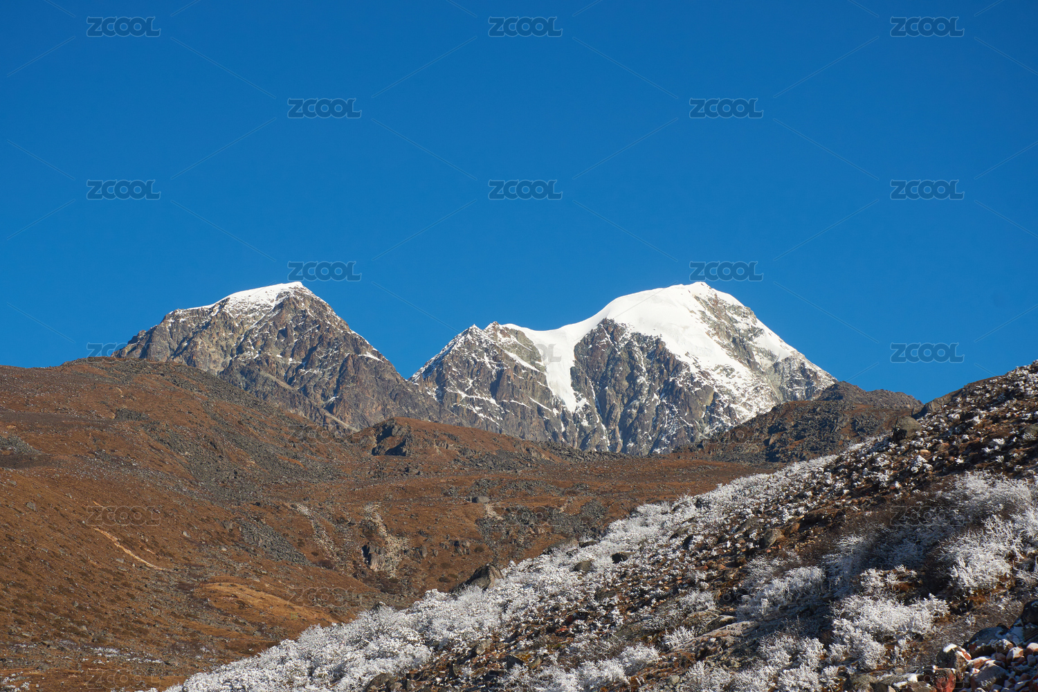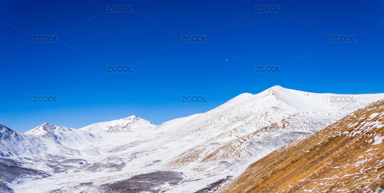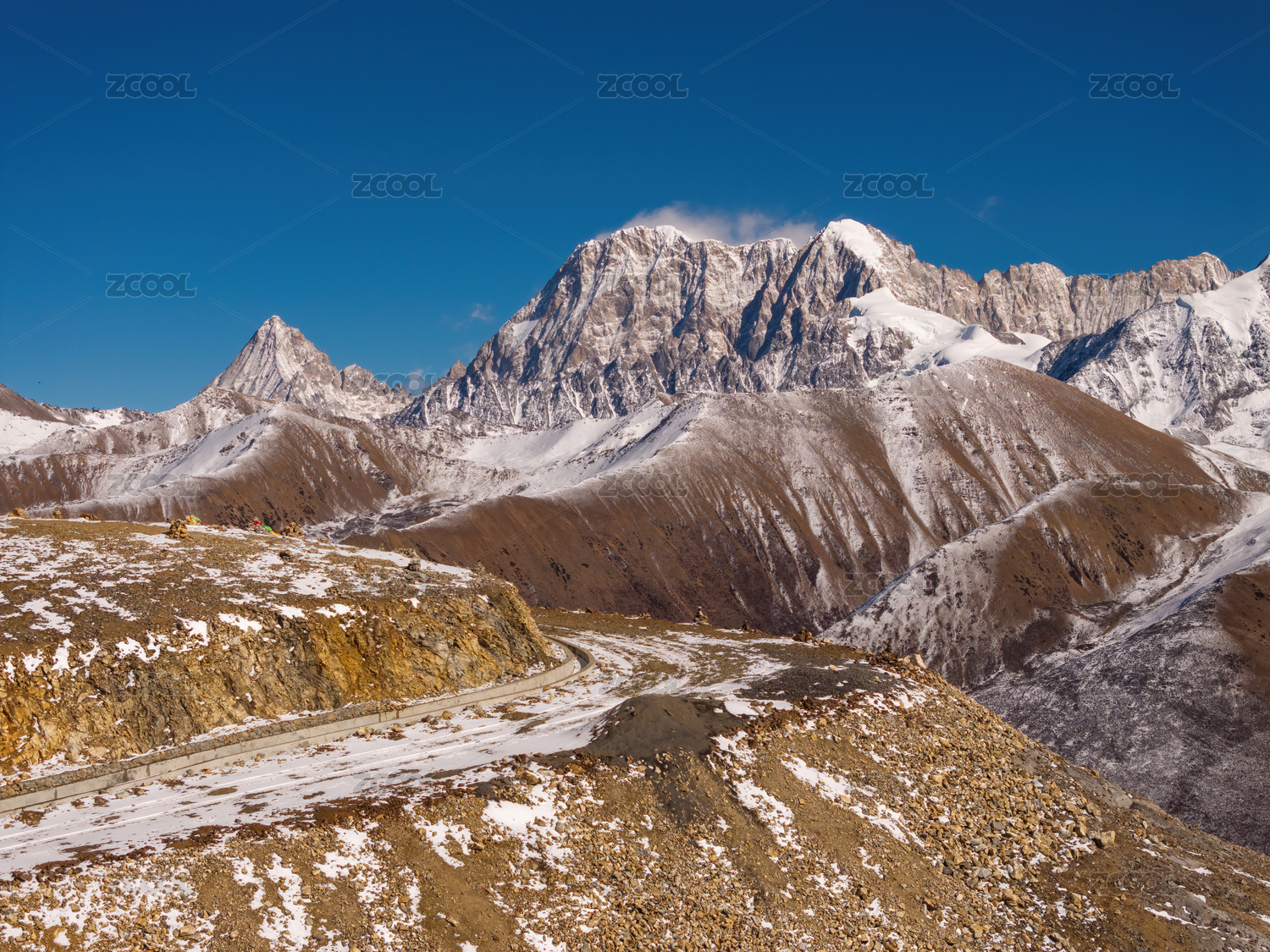 川西鱼子西观景台蓝天下的雅姆雪山风光