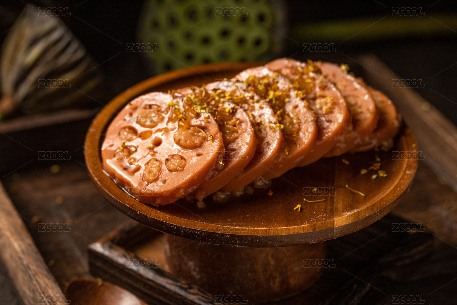 木桌背景一盘桂花糯米藕