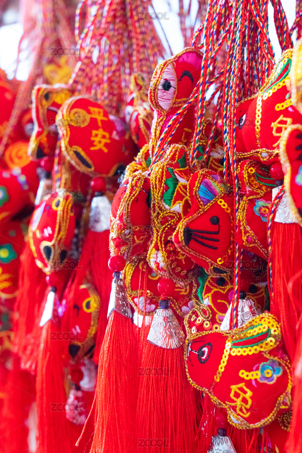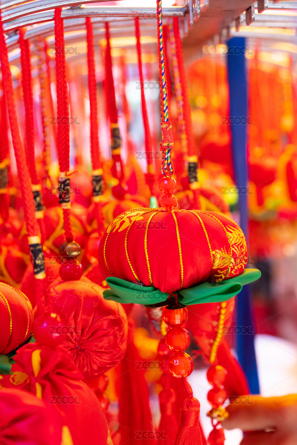 中国春节传统的饰品,灯笼,錢袋,紅椒等造型春节饰品