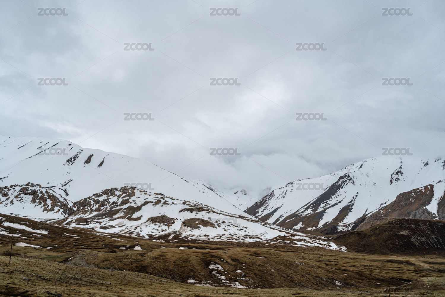 中国新疆 独库公路 高海拔的雪山苔原风景