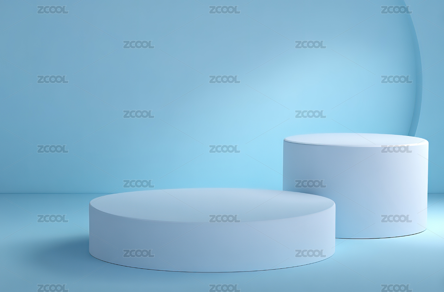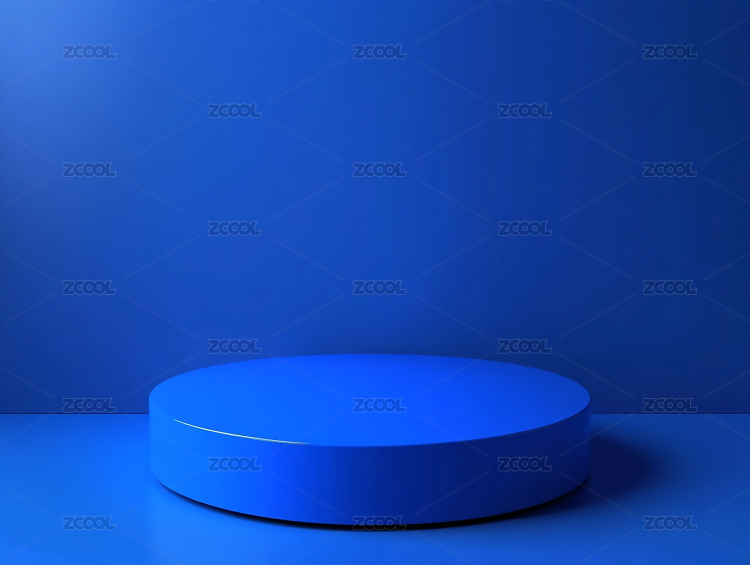 三维渲染的圆形方形蓝色几何体展台背景创意