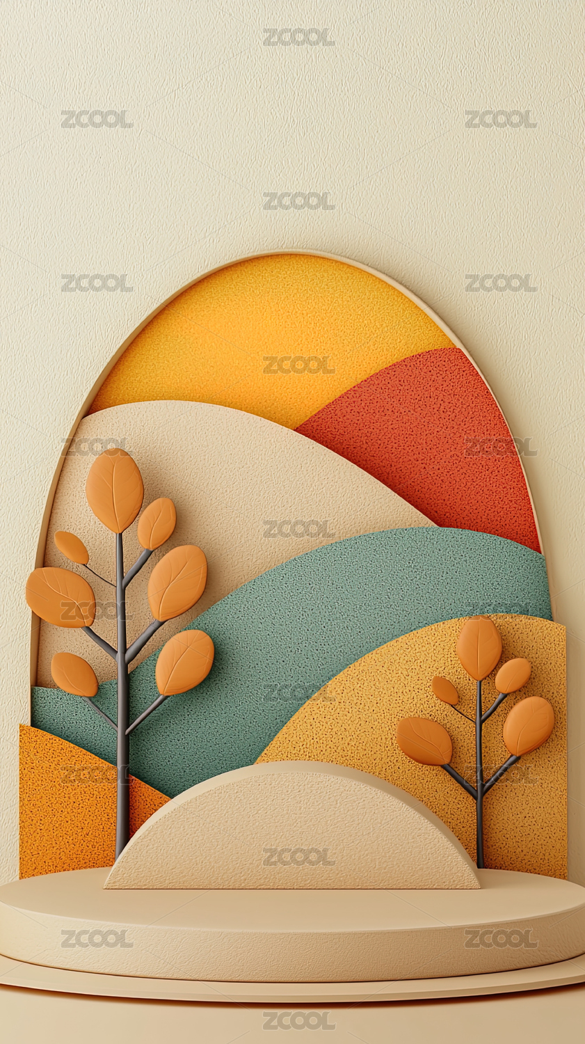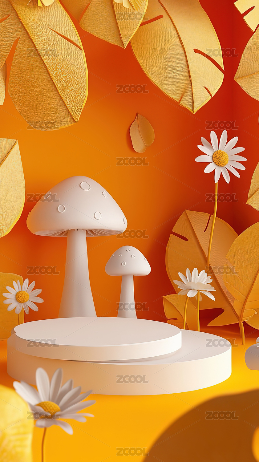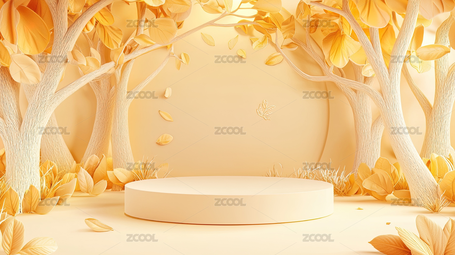 清新白色描金折纸花卉装饰展台展厅3D背景