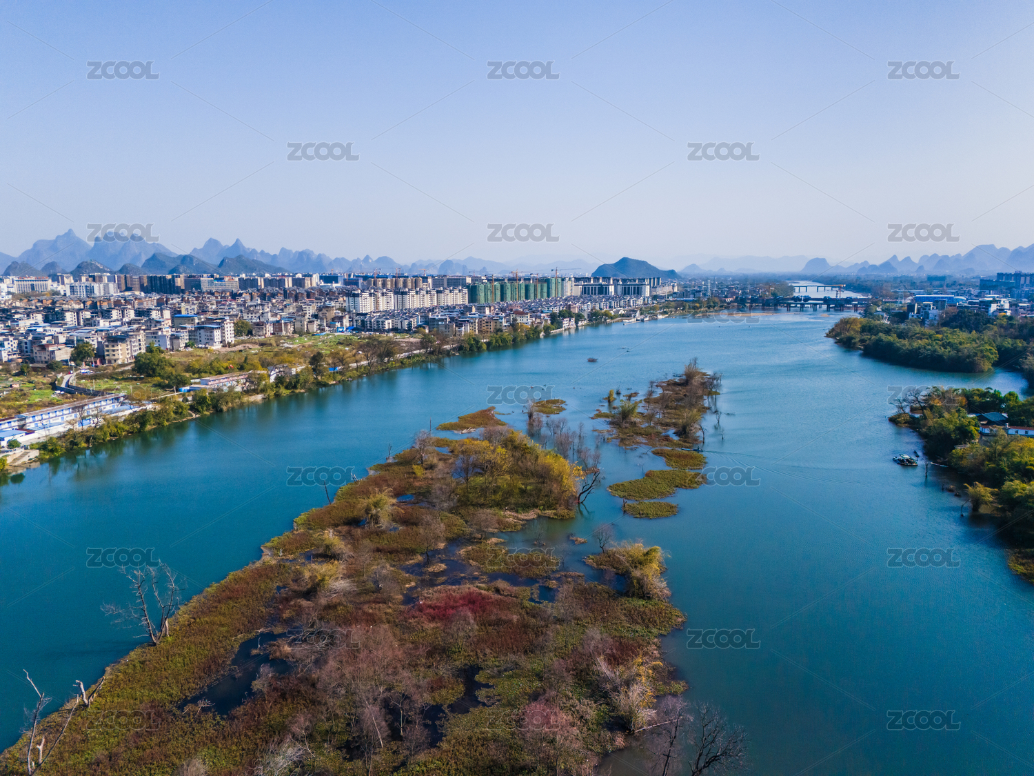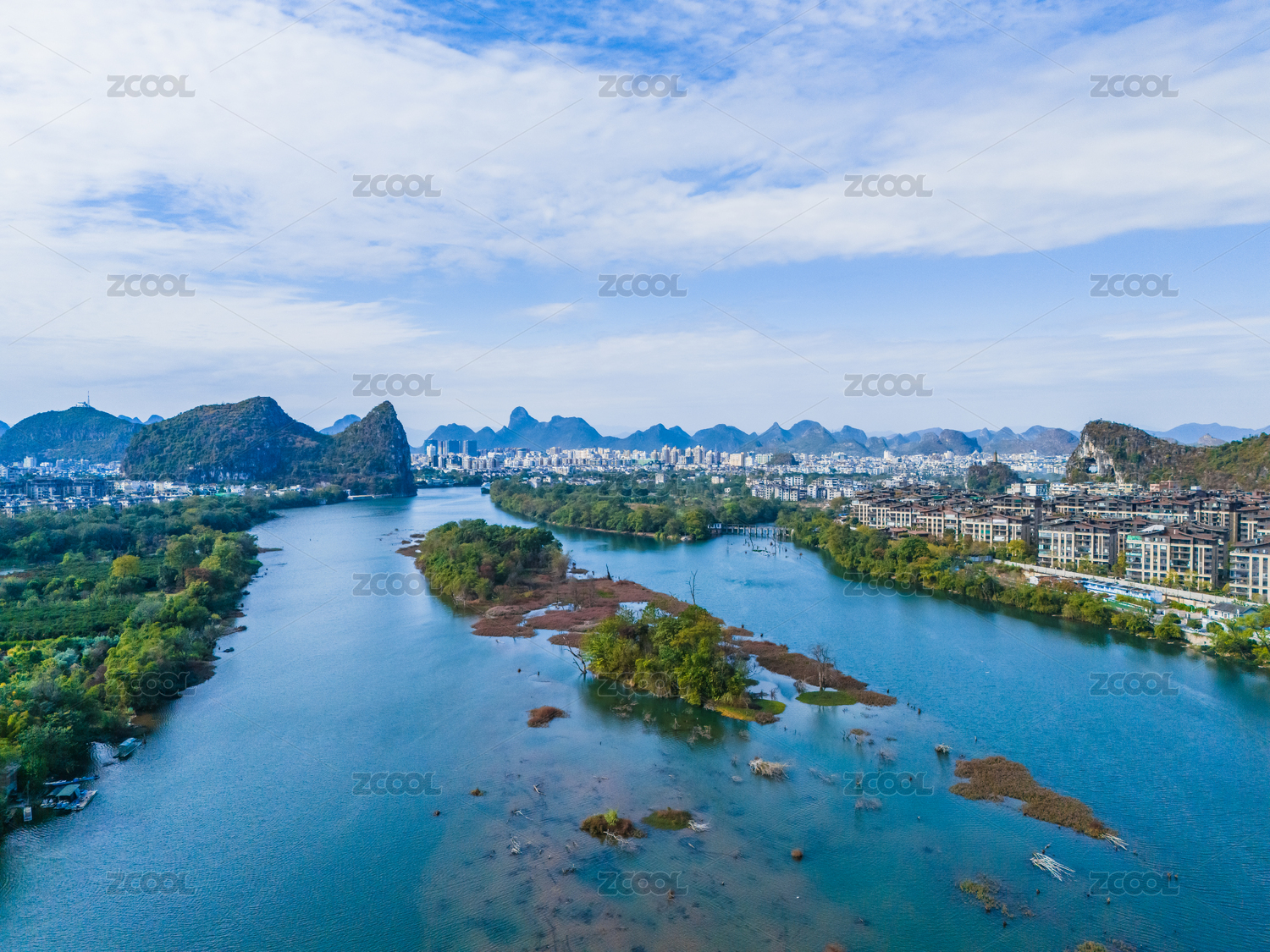 冬季桂林漓江和城市建筑