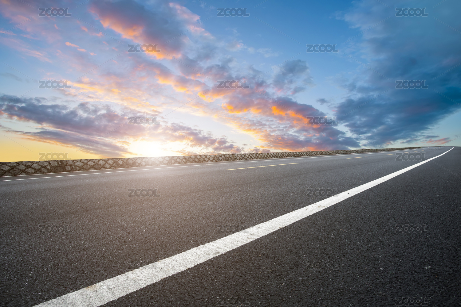 道路地面和天空云彩