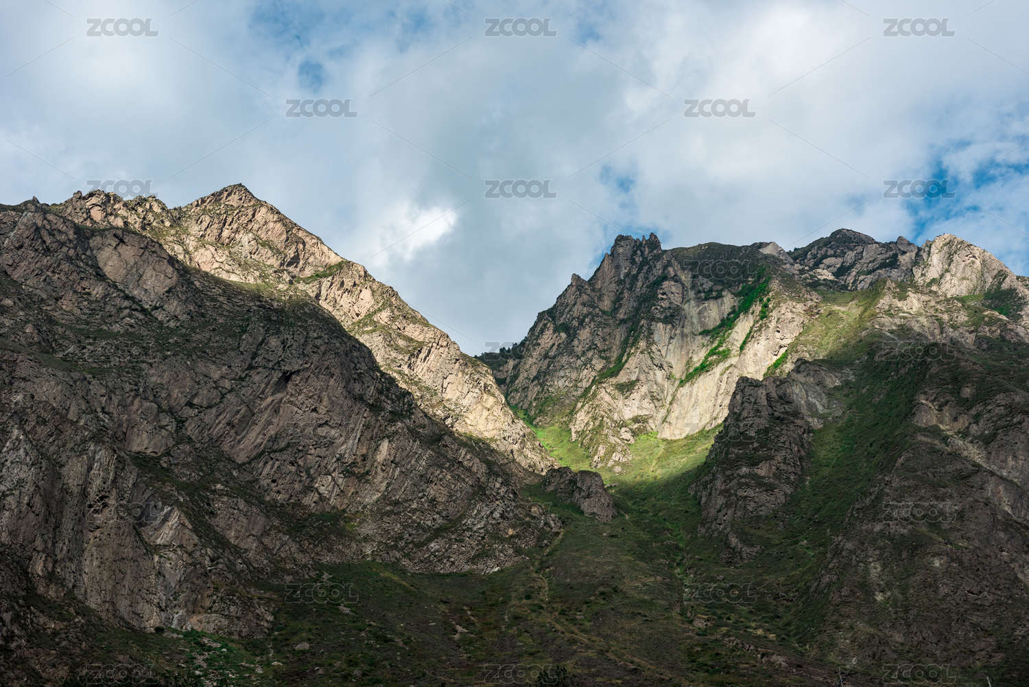 中国新疆独库公路上的天山,怪石嶙峋的山体