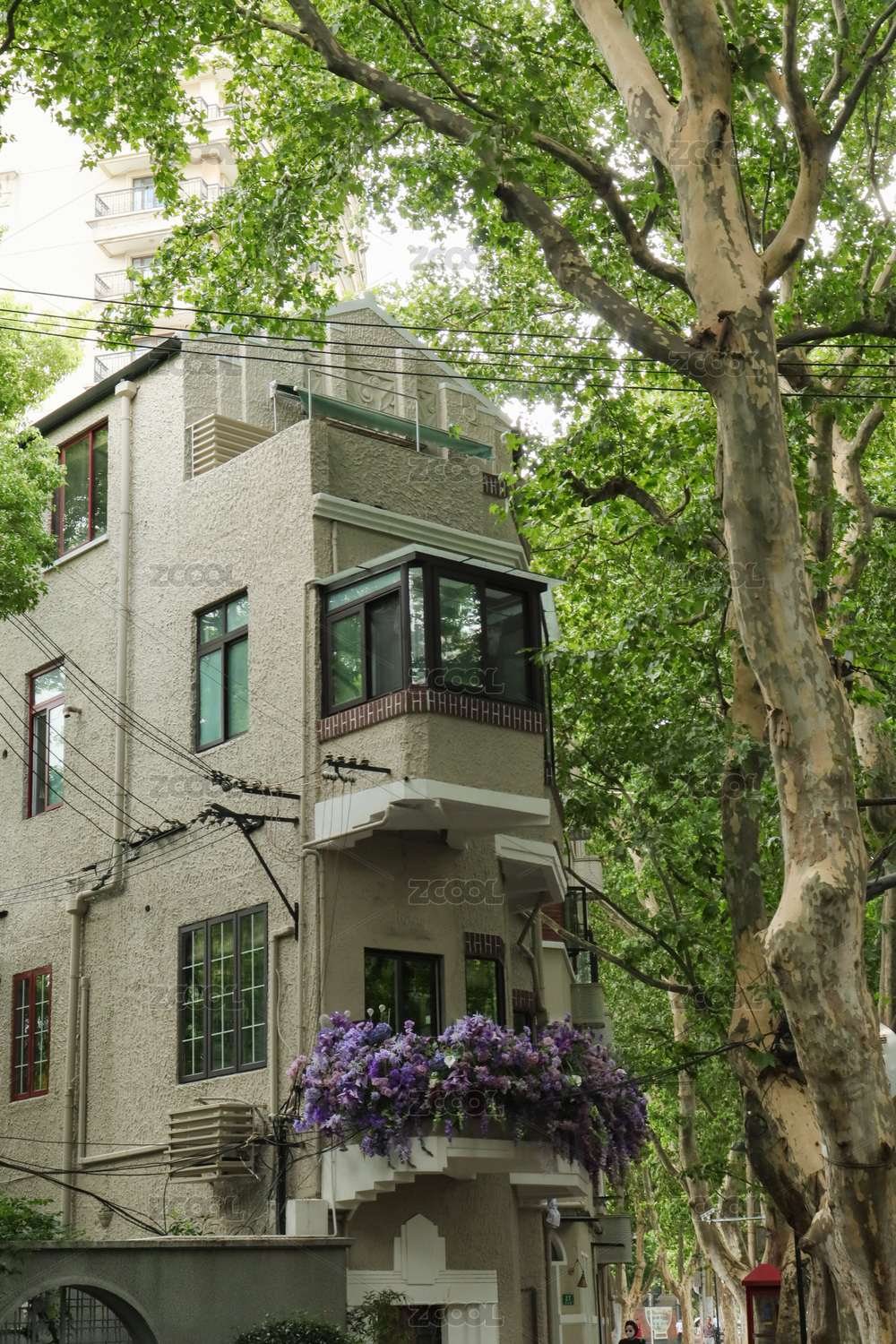 中国上海武康路欧式花园洋房的罗密欧阳台