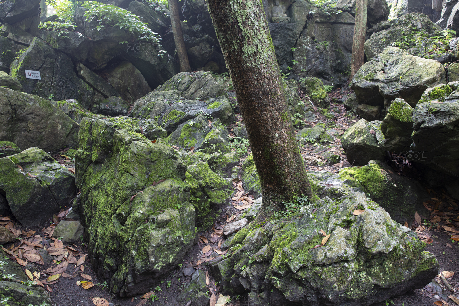 深山老林中巨型石头铺就的蜿蜒崎岖的山路