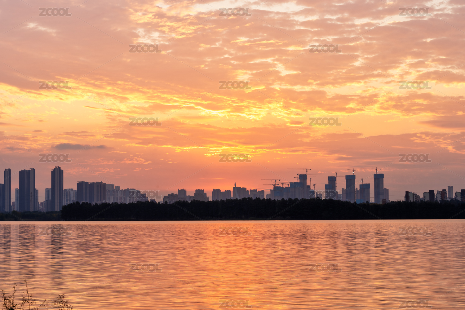 山东,济南,大明湖景区,大明湖畔,日出,雪景,湖面,倒影