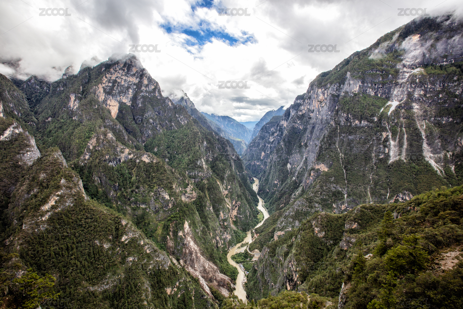 中国云南香格里拉大峡谷,金沙江奔流而过
