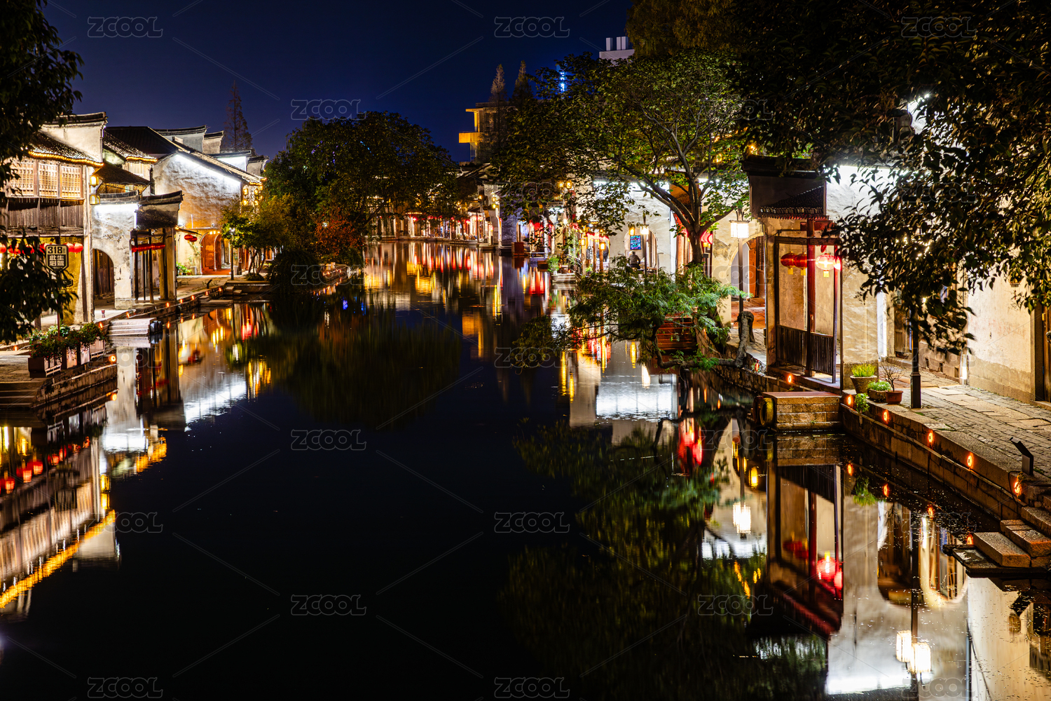 江南水乡浙江湖州南浔古镇通津桥夜景