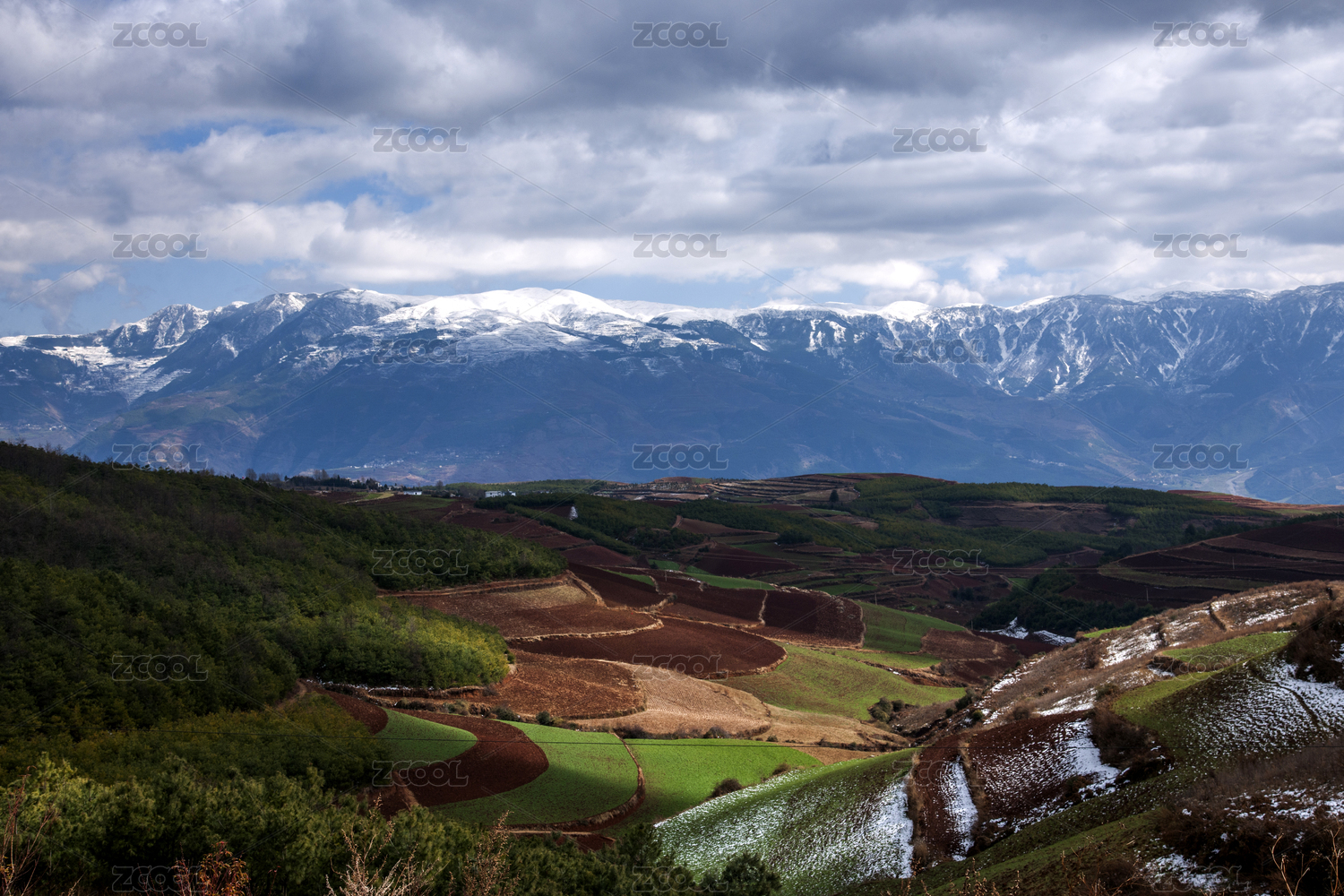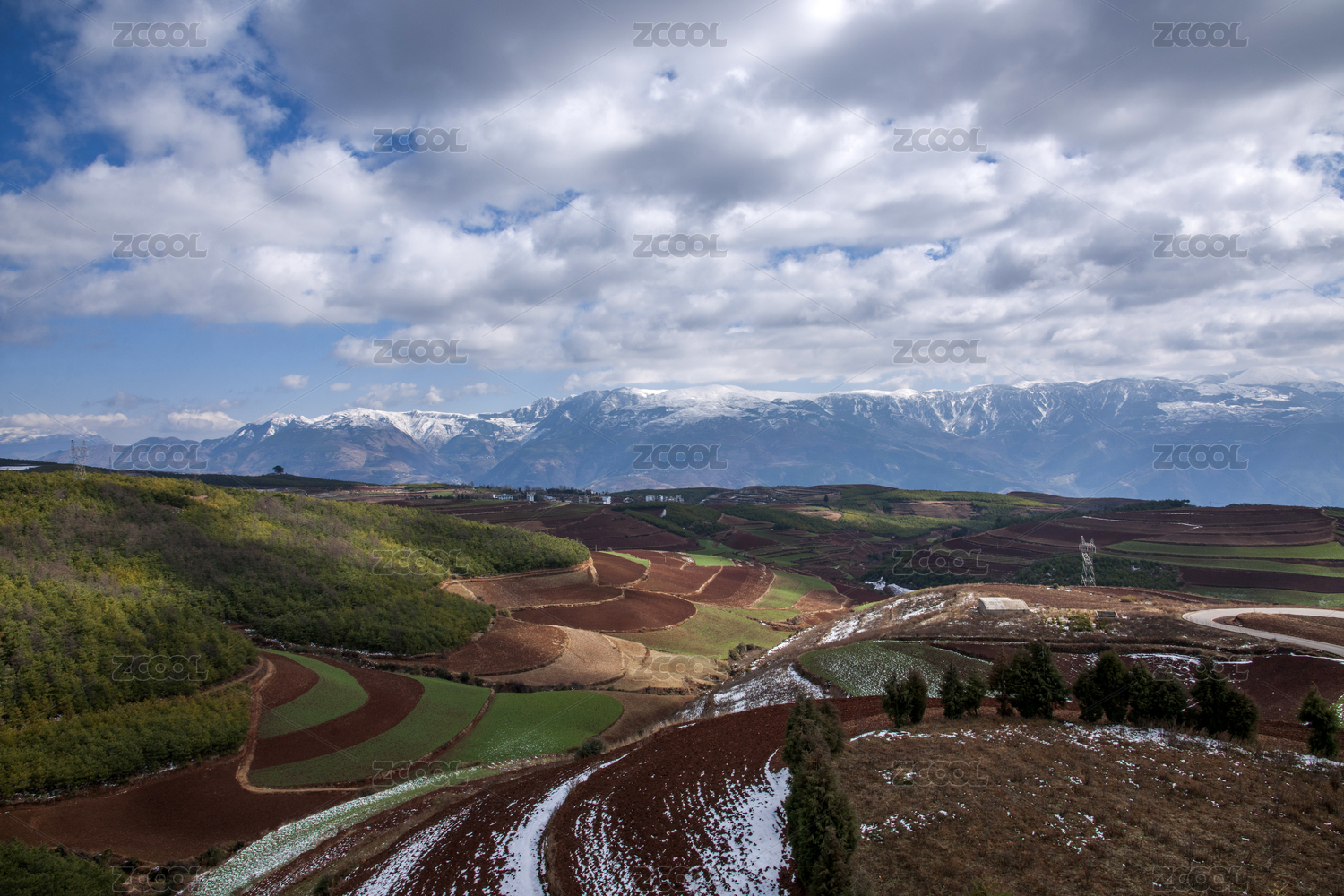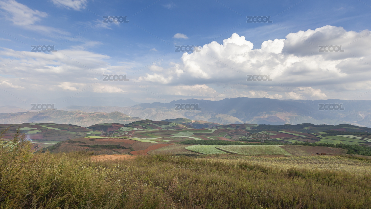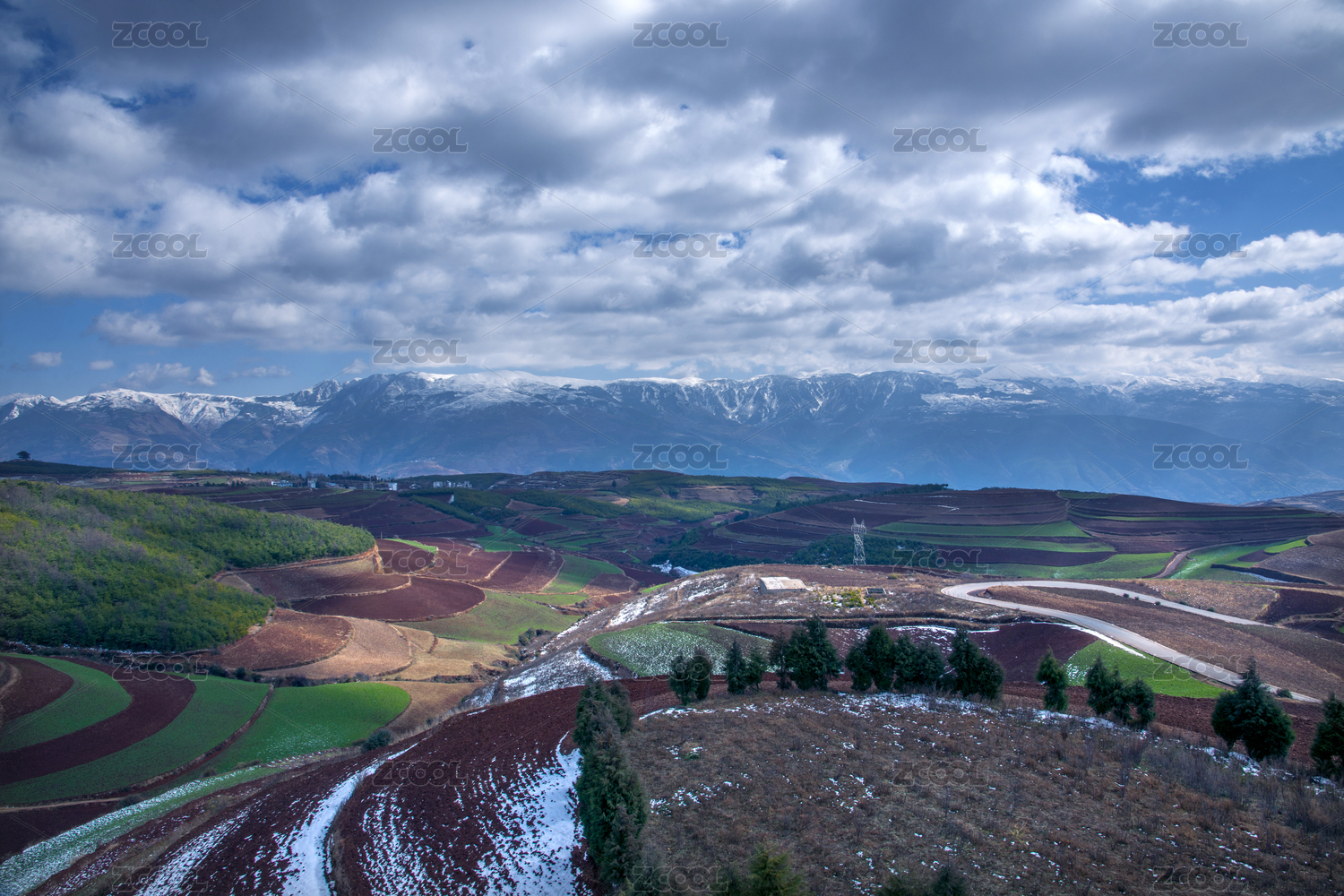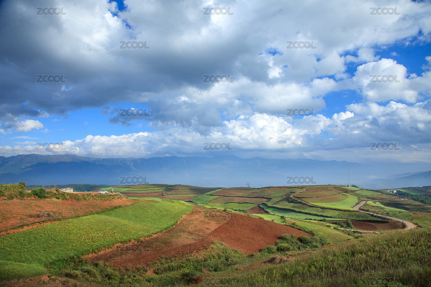 云南昆明东川红土地形地貌蜿蜒田野自然景观