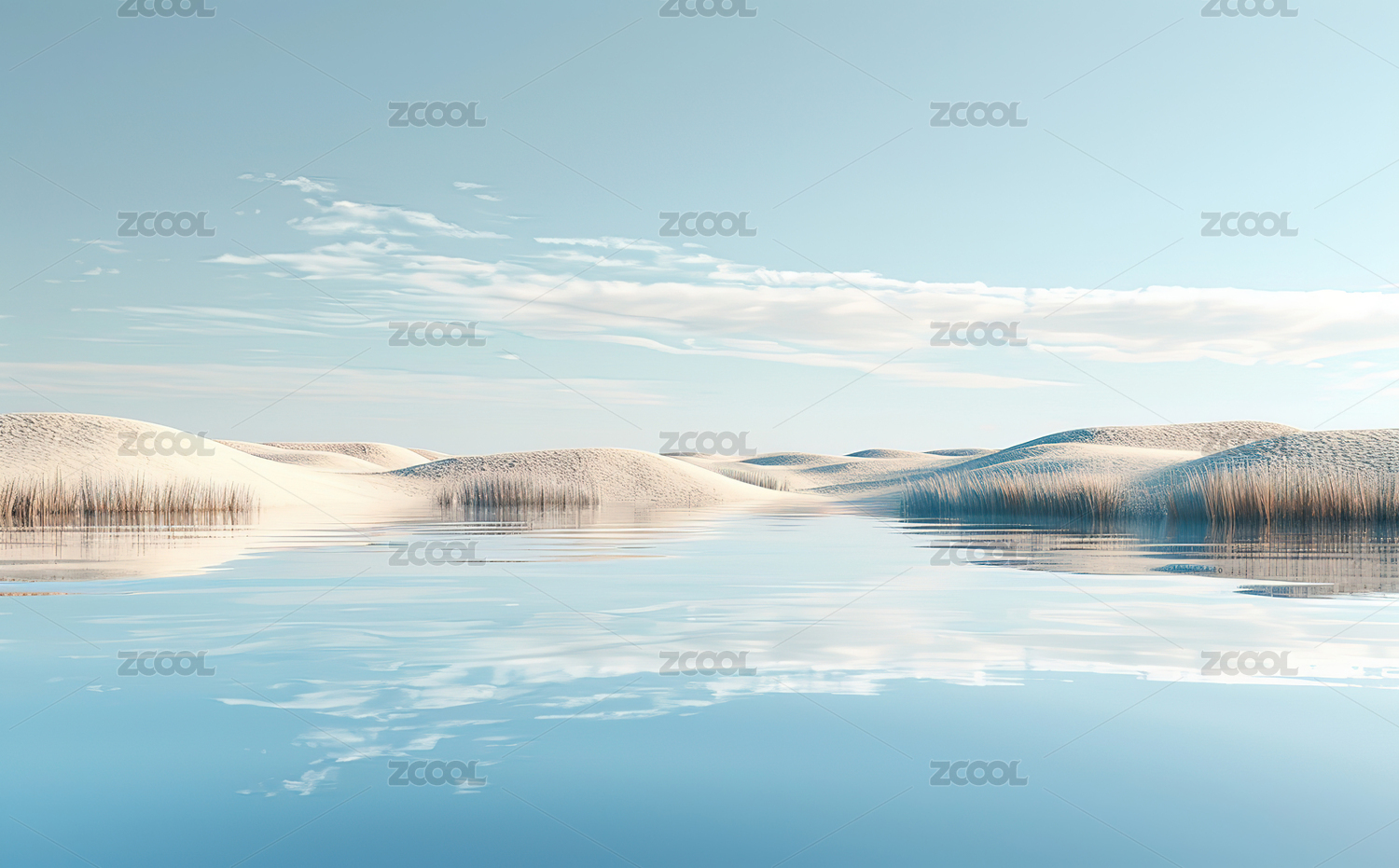 宁静沙漠与水面倒影