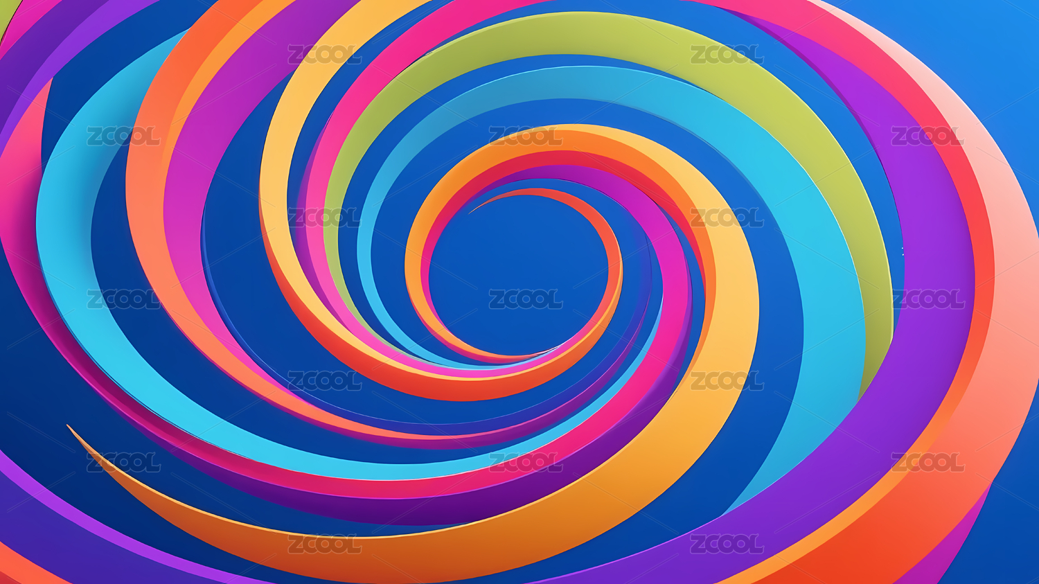 多彩螺旋圆环深蓝背景