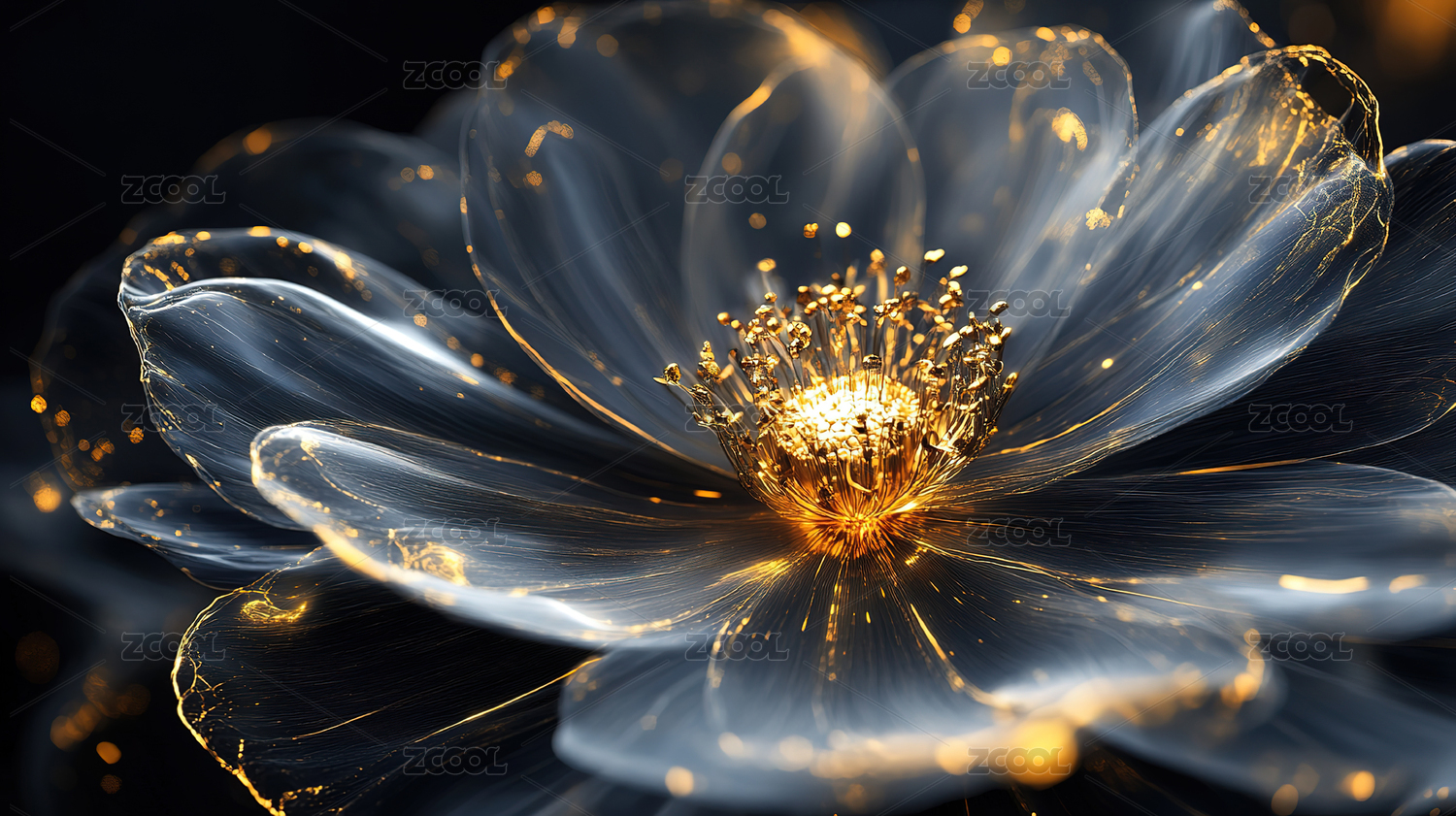 金色花卉特写3d抽象花朵PPT主视觉背景